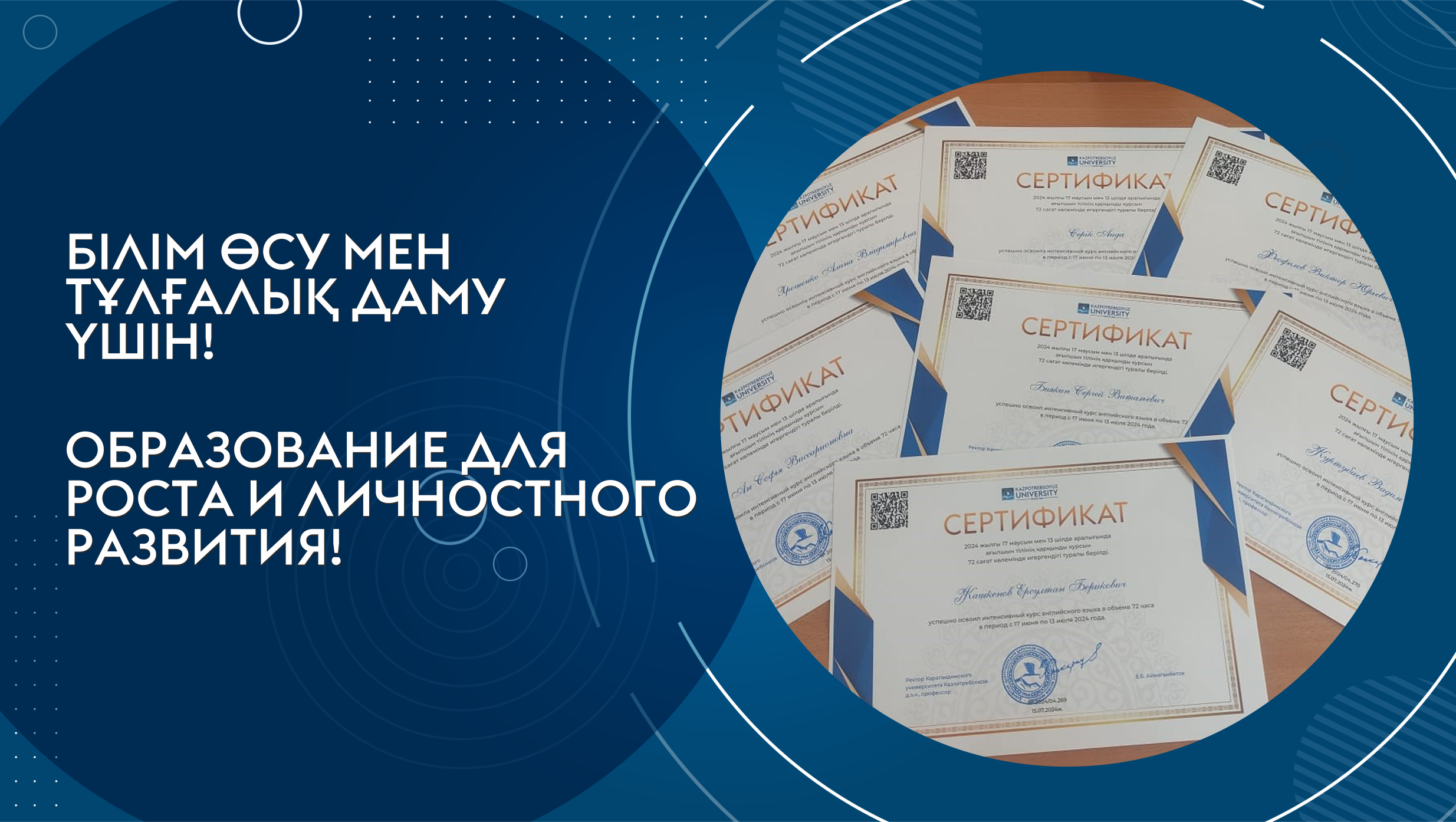 2023 жылдың 4 қазан мен 2024 жылдың 28 маусым аралығында Қазтұтынуодағы Қарағанды университетінің Көптілді білім беру орталығы университет және колледж білім алушылары арасында оқу деңгейлері бойынша мемлекеттік және шет тілдер курстарын ұйымдастырып, жүзеге асырды. Тыңдаушыларға Beginner деңгейінен бастап Intermediate деңгейіне дейін курстарды сәтті аяқтағандары үшін сертификаттар берілді. Курс тыңдаушылары үлкен жұмыс атқарды және де мемлекеттік және шет тілдерін үйренудің жаңа дағдыларын игерді. Бұл жетістіктер олардың табандылығының, еңбекқорлығының және өзін-өзі жетілдіруге деген ұмтылысының айқын дәлелі болып табылады.