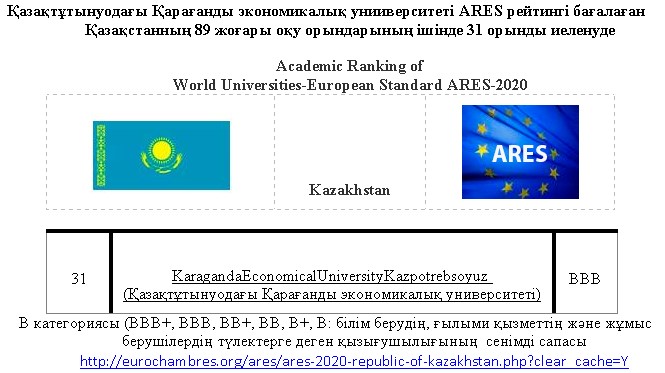 ҚҚЭУ жоғары оқу орындарының халықаралық рейтингісінде (ARES-2020) ARES-2020 рейтингтік деректерді өңдеу аяқталды. ARES – жоғары оқу орындарының халықаралық рейтингі. Мамандар білім беру сапасын және оны жақсарту сапасын бағалайды. Сонымен қоса халықаралық қызметті, жұмыс берушілермен байланысты, ғылыми зерттеулерді және университеттің аймақтық маңыздылығын бағалайды. ARES-те өңдеу адами факторды есепке алмай автоматты түрде жүзеге асырылады, және бағалауда критерий ретінде жоғары білімнің Еуропалық стандарттары алынады