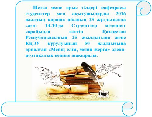 жұмыстары бойынша сайыс (орта мектеп оқушылары мен студенттер үшін) - 23 қараша 2016 ж.