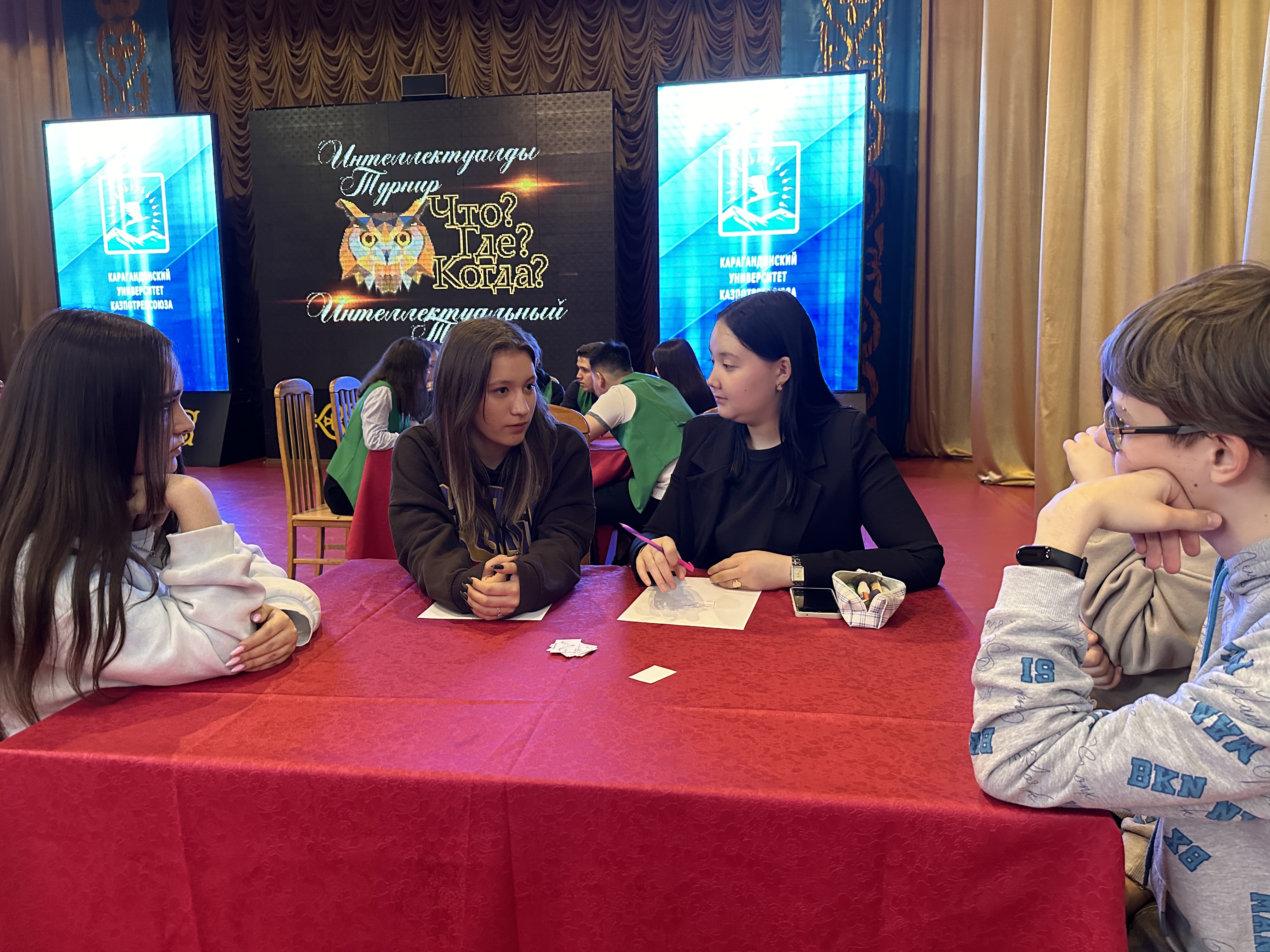 2024 жылдың 10 сәуірінде біздің университетте студенттер мен Қазтұтынуодағы Қарағанды университетінің Экономика, бизнес және құқық колледжінің білім алушылары арасында "Не? Қайда? Қашан?" интеллектуалды ойыны өткізілді.