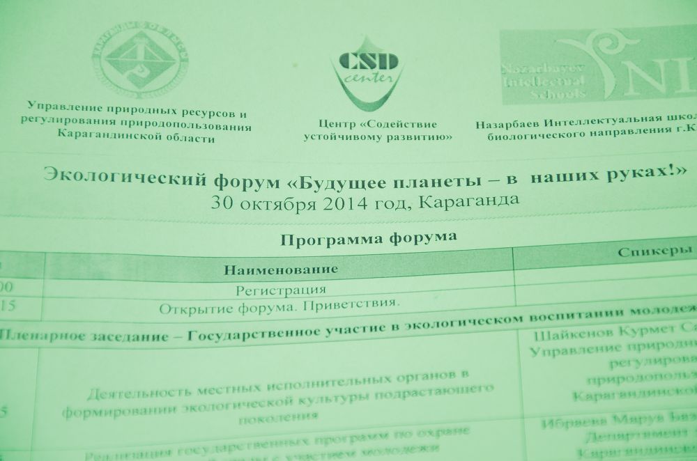 Экологиялық форум Назарбаев зияткерлік мектебінде өткізілді және онда әкімшілік пен қала акиматының өкілдері, Қарағанды қ. мектеп оқытушылары мен ауданның жетекші ЖОО мұғалімдері қатысты.