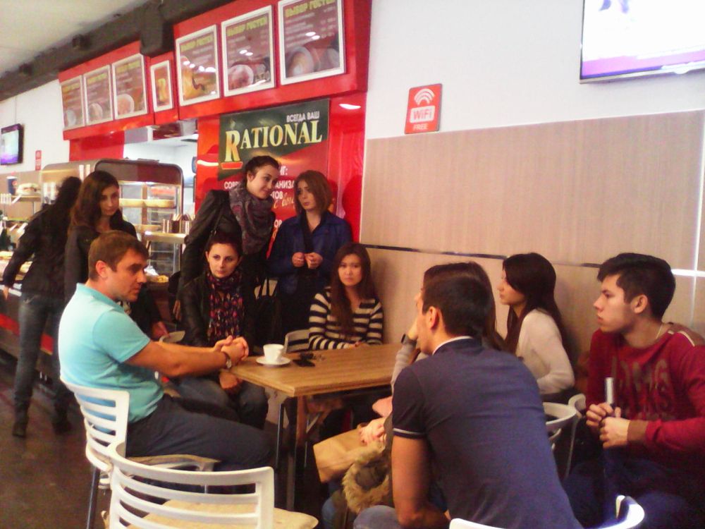 Сабақ «Рестро - тур» түрінде өткізілді. Сабақ барысында студенттері бизнес класс деңгейіндегі асханаларда болды: «Rational», «Sky», «Dolche» кафелері. Бұл кәсіпорындар мен ондағы қызмет көрсетуші персоналдардың жұмыс ерекшеліктері туралы айтып берген: