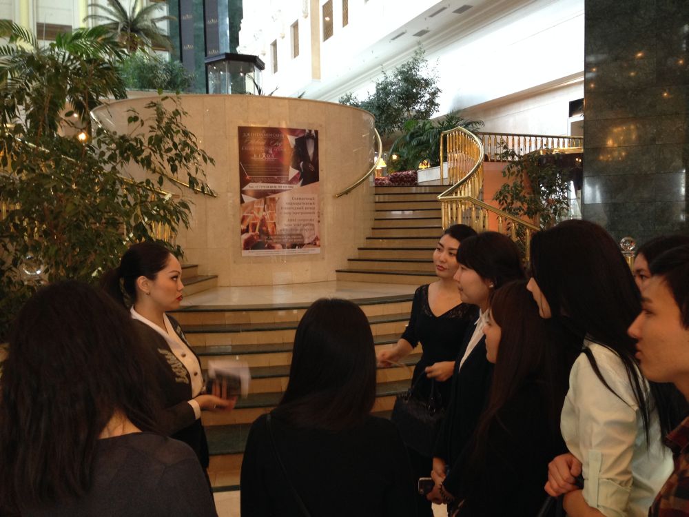 Білім беру процесінің тәжірибелік аспектісін күшейту мақсатында туризм және мейрамхана ісі кафедрасы «Туризм», «Мейрамхана ісі және қонақ үй бизнесі» мамандықтарының студенттері үшін «RIXOS PRESIDENT ASTANA» қонақ үйіне сыртқа шығу сабағын ұйымдастырды. Студенттер халықаралық деңгейдегі қонақ үй бизнесінің негіздері және ондағы қызмет жұмыстарының ерекшеліктерімен танысу мүмкіндігін алды. Экскурсиядан соң, студенттер Қазақстан Республикасының Ұлттық мұражайына барып, отандық мұражай ісінің тарихында алғаш рет ұйымдастырылған «Жұлдызды гид» жобасының куәгері болды. «Жұлдызды гид» қатарында Қарақат Әбілдина, Құрмаш Маханов, Қалқаман Сарин, Клара Төленбаева, Маржан Арапбаева, Досымжан Танатаров және Гүлнұр Оразымбетова секілді қазақстандық эстрада өкілдері болды. «Жұлдыздардың» ұсынуымен студенттер халқымыздың бай мәдениеті туралы өз білімдерін толықтырды.