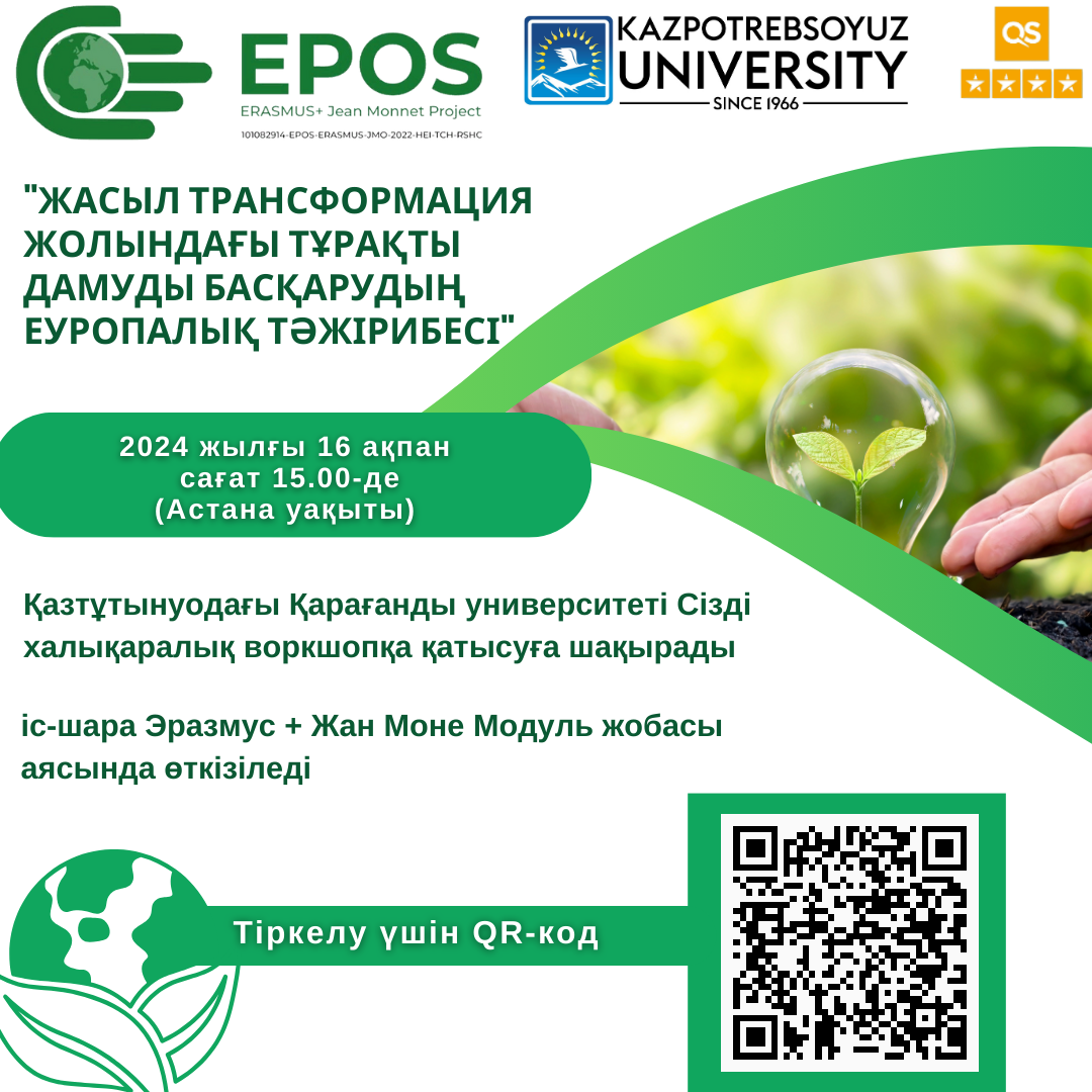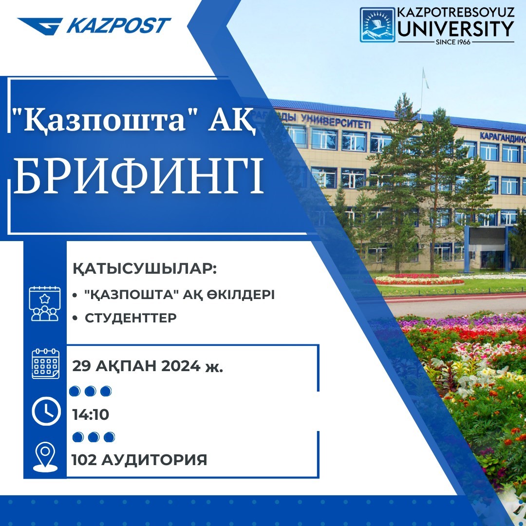 Қазтұтынуодағы Қарағанды университеті «Қазіргі жастар: инновациялар жасай отырып, біз болашаққа ұмтыламыз» атты IX халықаралық студенттерслеты жұмысына қатысуға шақырады Студенттердің ха лықаралық слеты 2024 жылдың 11-12 сәуірінде өтеді . Отырыстың өтетін орны: Қазақстан, Қарағанды қаласы, Қазтұтынуодағы Қарағанды университеті Түрі: - on-line және off-line.