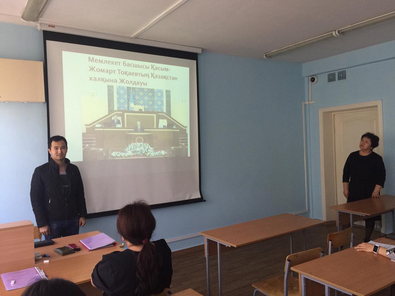 Ф-11к, Ф-33ск, Ф-41к топтарының қатысуымен Қ.К.Тоқаевтың 2019 жылғы 2 қыркүйектегі жарияланған жолдауына байланысты студенттер арнайы баяндамалар оқыды: