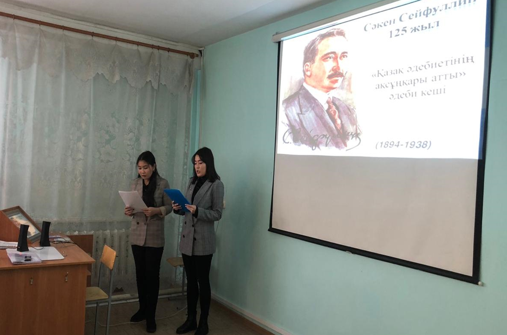 Қатысушылар С. Сейфуллиннің қазақ әдебиетін дамыту ісіне қосқан елеулі үлесі туралы білді. Қатысушылар Сәкен Сейфуллиннің өмірі мен шығармашылығына арналған деректі фильмді тамашалады. Рахат А., Туспаева Л., Ізбасар А., Курбанова Д., Әлкен Т. ақынның рухани әлемін дамытып, байытатын өлеңдерін ортаға салды.