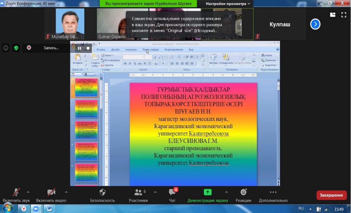 Үзілістен кейін 7 секциялық отырыс бойынша жұмыс жалғастырылды. Конференция қорытындысы бойынша материалдар жинағы шығарылды.