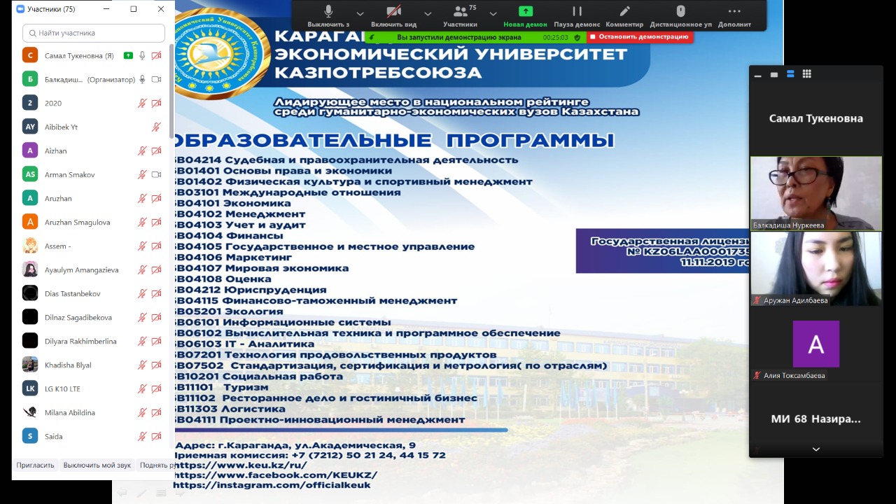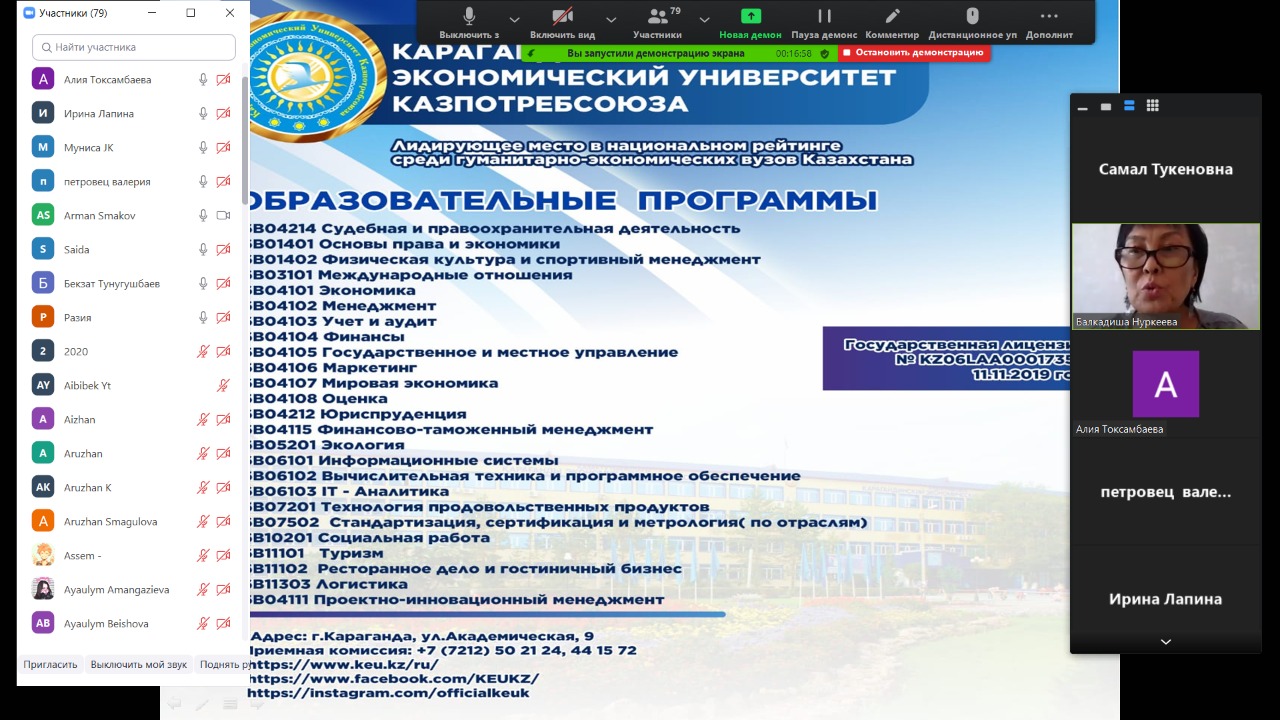 2020 жылдың 31 қазанында экономика, басқару және кәсіпкерлік факультетінің шетел және орыс тілдері кафедрасы Қарағанды қаласының 20 мектебінен 110 оқушы қатысқан "Көптілді түлек" атты үш тілде олимпиада өткізді. Олимпиада нәтижелері бойынша орындар келесідей бөлінді: