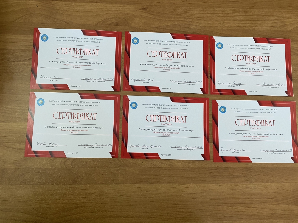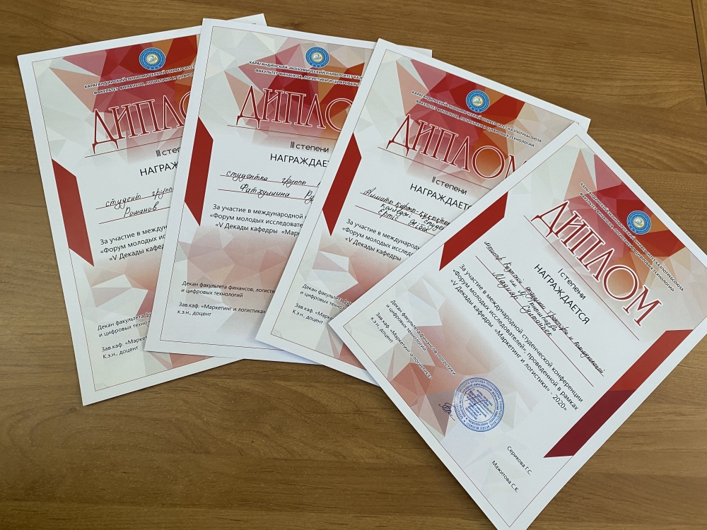 III-ші орын-Қазтұтынуодағы Қарағанды экономикалық университетінің студенті Фатхуллина Рузанна "логистикалық процестерді автоматтандыру" тақырыбындағы жұмысымен (ғылыми жетекшісі-э.ғ. к., доцент Мажитова С. К.).
