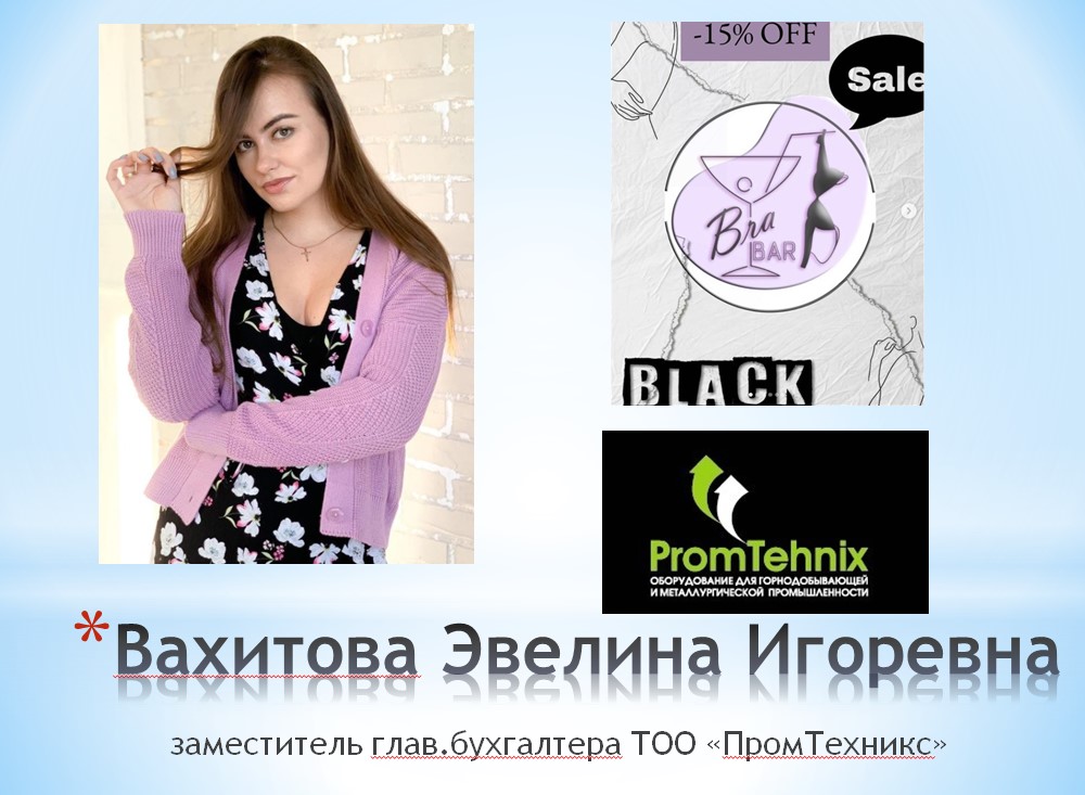- Мельникова Эвелина Игоревна - магистратура түлегі .«PromTechnics» ЖШС бас есепшісінің орынбасары;