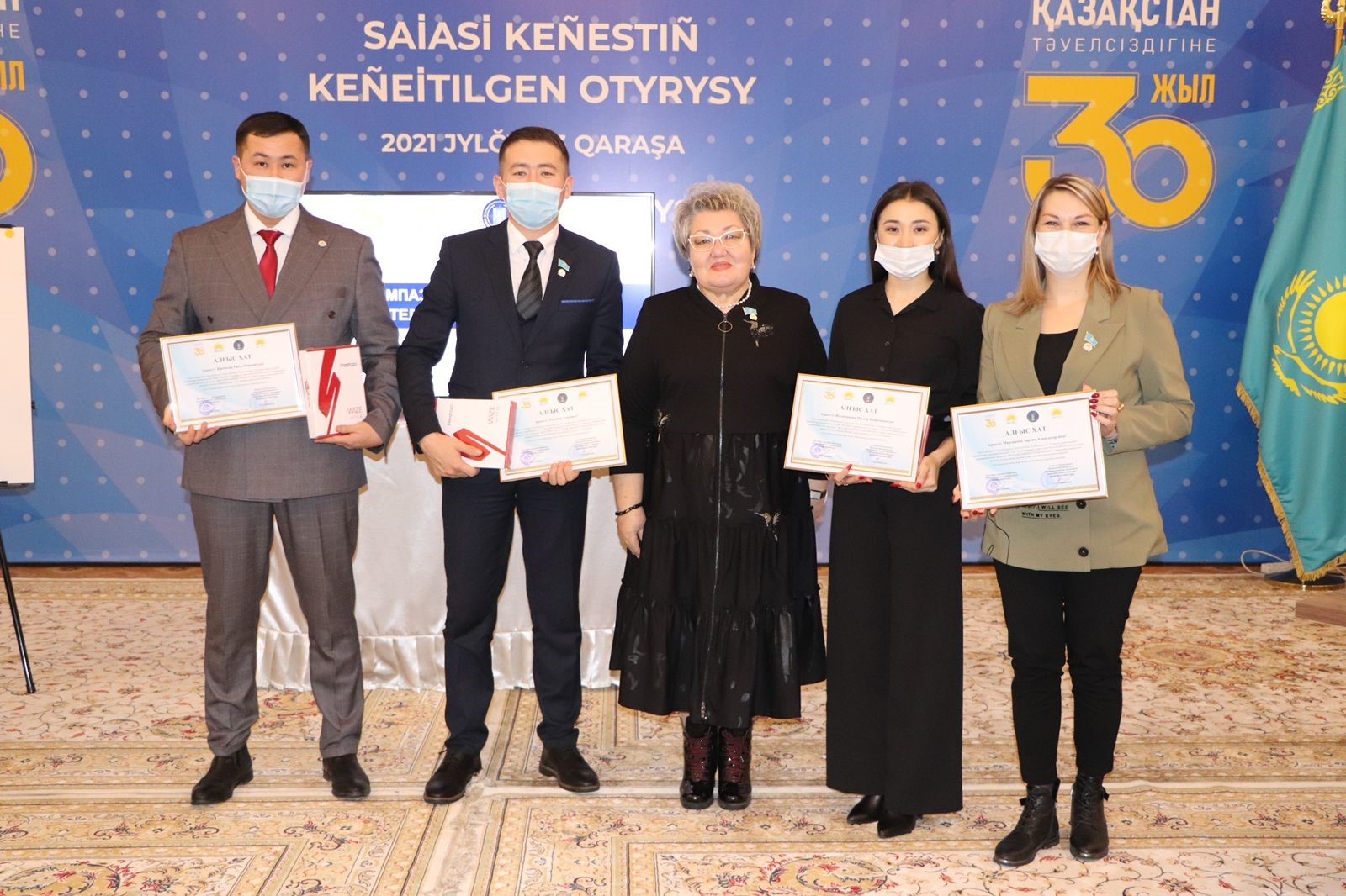 «Nur Otan» партиясы Қарағанды облыстық филиалы мен Мемлекеттік басқару академиясы Қарағанды облысы филиалы және «Jas Otan» Жастар Қанатының ұйымдастыруымен ҚР Тәуелсіздігінің 30 жылдығына, «Елдіктің жеті тұғыры» атты қағидаттар жиынтығына арналған «Жасампаздыққа толы жылдар» интеллектуалды ойыны өтті. Іс-шараға «Nur Otan» партиясының белсенді мүшелері, жас депутаттар, жаңадан сайланған жас әкімдер, мемлекеттік қызметкерлер мен белсенді жастар қатысты. Қатысушылар қатарына бизнес, құқық және технология факультетінің тәрбие ісі жөніндегі орынбасары Жоламанова Мөлдір Қайрханқызы мен факультеттің белсенді студенті, «Jas Otan» Жастар қанатының Қазтұтынуодағы Қарағанды универсетіндегі төрағасы, С-20-2 тобының студенты Сейдахмет Асылхан арнайы шақырылып, іс-шараға жүргізуші ретінде Ю-18-4 тобының студенті Майтанова Карина, өз өнерлерін көрсетіп ТД-18-1к тобының студенті Меней Жұлдыз, СР-18-1к тобының студенті Майрол Роза қатысып, факультеттің студенттері қолдау білдіріп, белсене ат салысты. Кеш соңында қатысушыларға арнайы алғыс хаттар берілді. Іс-шара туралы ақпарат жергілікті «Сарыарқа» телеарнасында жарияланды.