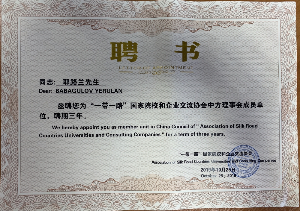 Қазтұтынуодағы Қарағанды экономикалық университетінің Жібек жолы елдерінің университеттері мен консалтингтік компаниялары қауымдастығына мүшелігі аясында университеттің экономика, бизнес және құқық колледжінің оқытушылары - Бабагулов Е., Конкашова Г. 2019 жылдың 21 қазанынан 1 қарашасына дейін Бейжің ақпараттық технологиялар колледжінде (Пекин, Қытай) Жібек жолы елдерінің университеттері мен консалтингтік компаниялары қауымдастығы ұйымдастырған қысқа мерзімді тағылымдамадан өтті.