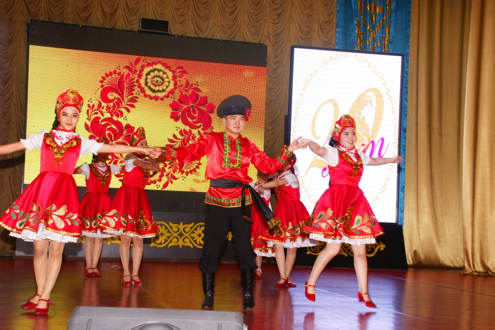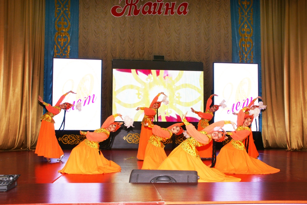 Алға! Жетістікке қарай ұмтыл! 1999 жылы Қарағанды экономикалық университетінде осы ұранмен «Жайна» ансамблі ұйымдастырылған еді. Ансамбль құрамында қазір 40 адам билейді, олардың 20 - негізгі құрамда, қалған балалар даярлайтын топта шұғылданады.