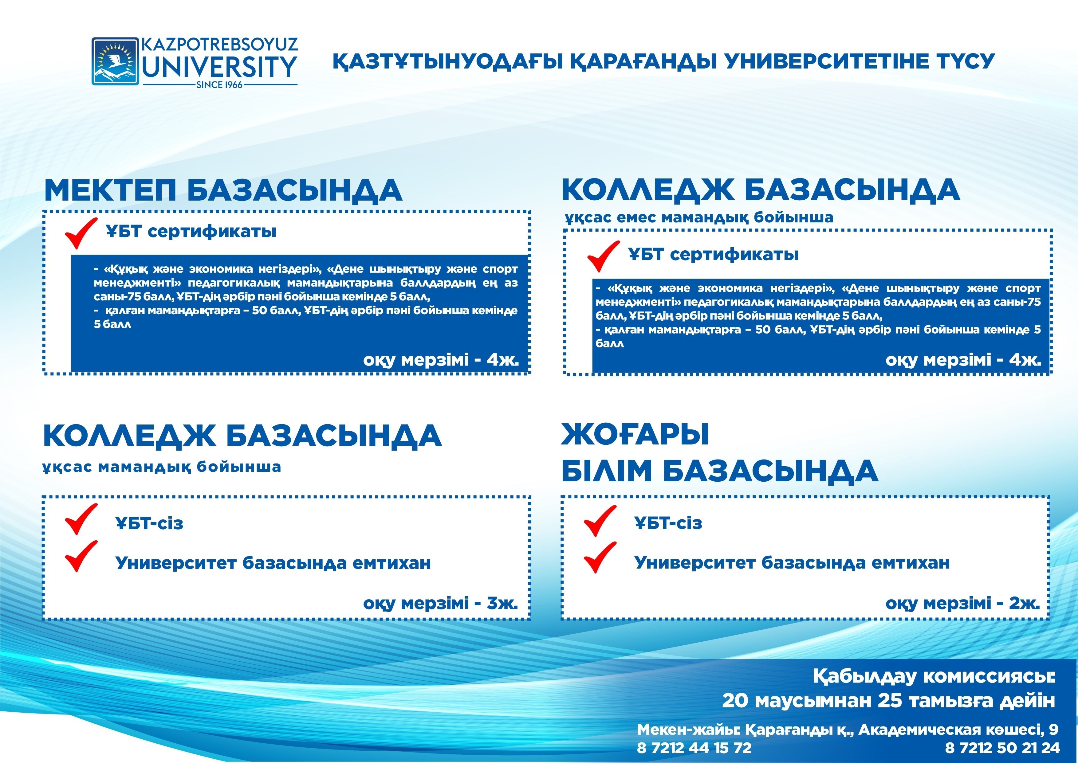 2025 жылы Қазтұтынуодағы Қарағанды университетіне оқуға қабылдау Ережесі