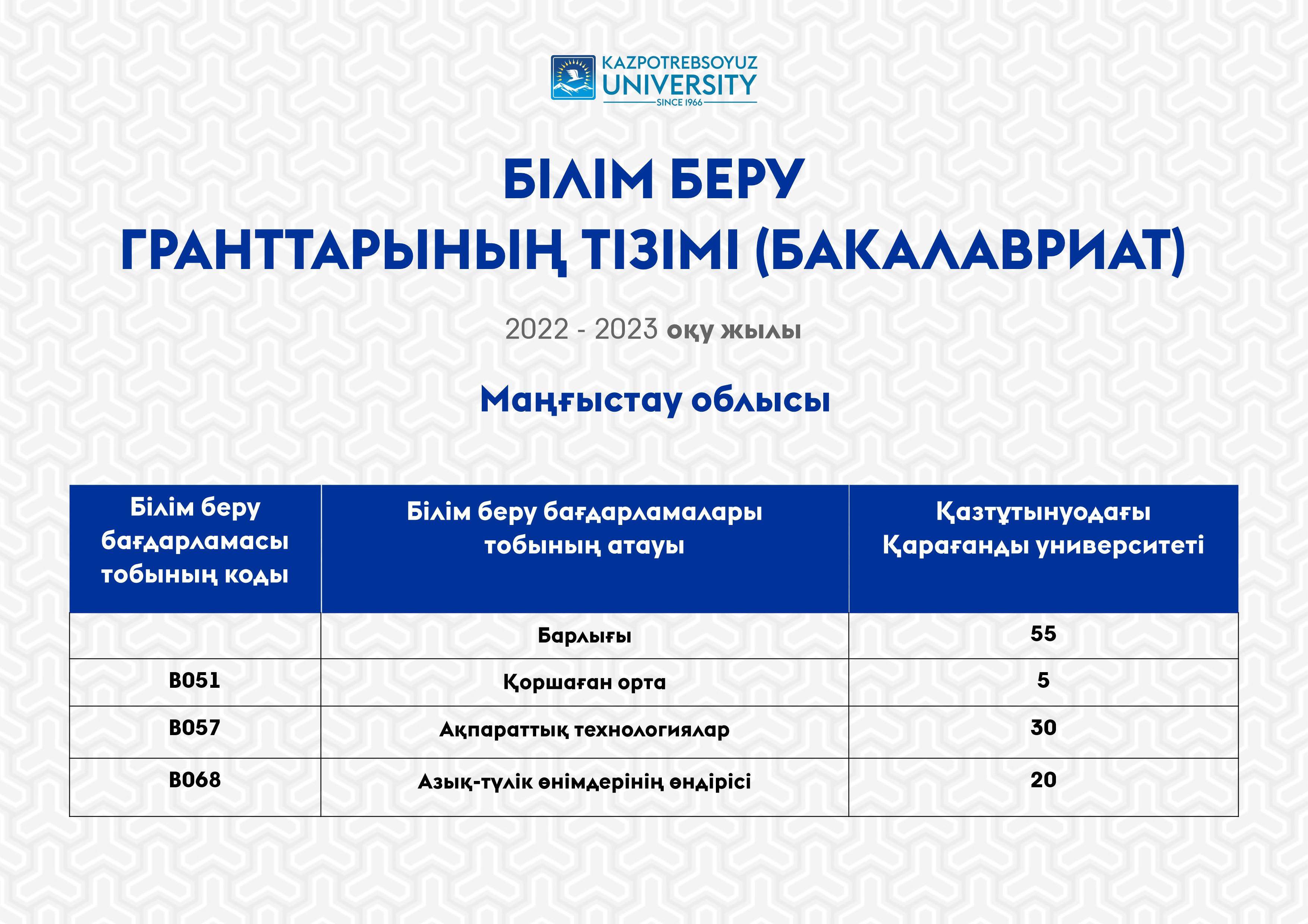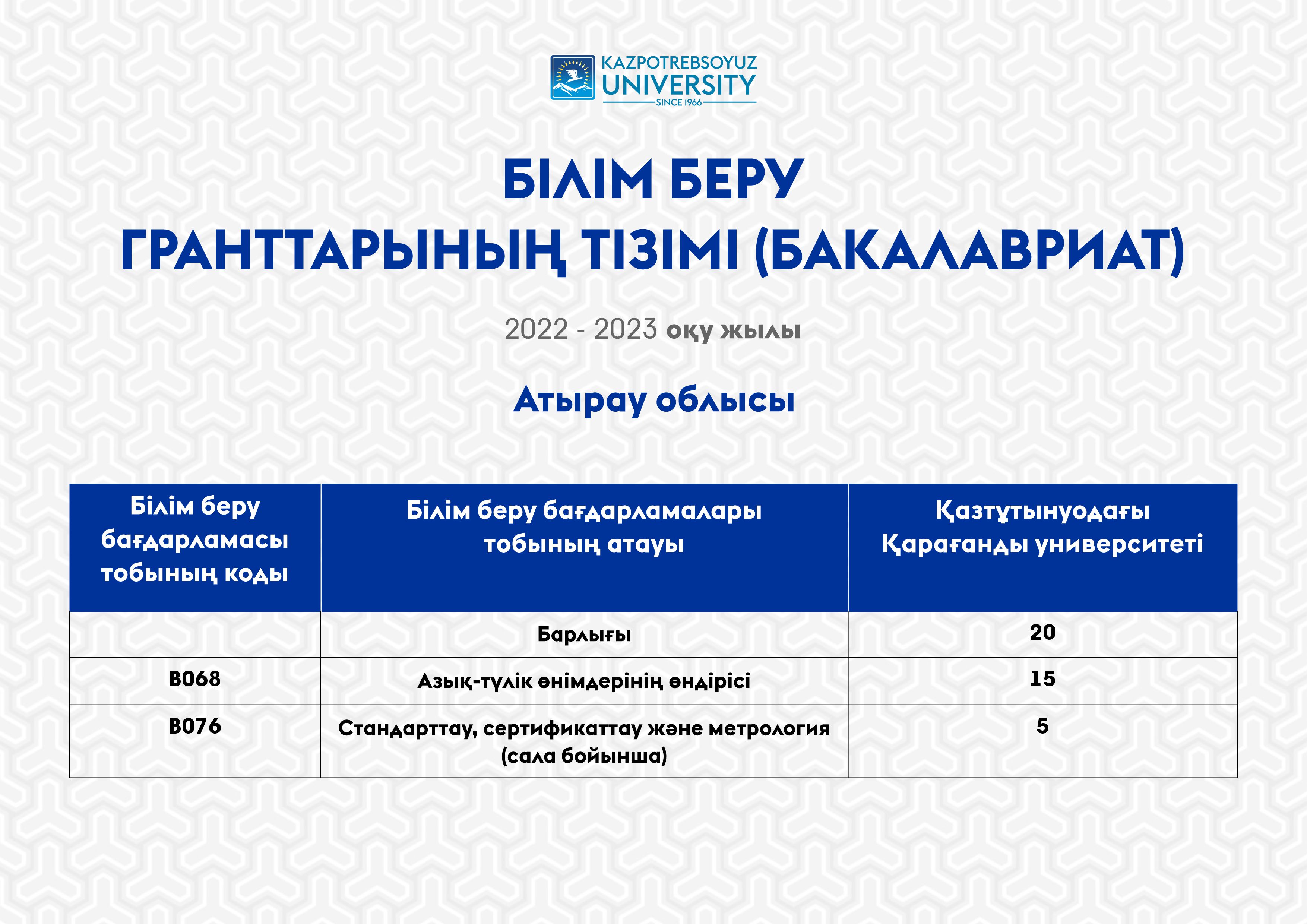 Атырау және Маңғыстау облысының мектеп бітіруші түлектері осы аталған мамандықтарды таңдап грантқа конскурсқа тапсырыс бере алады.