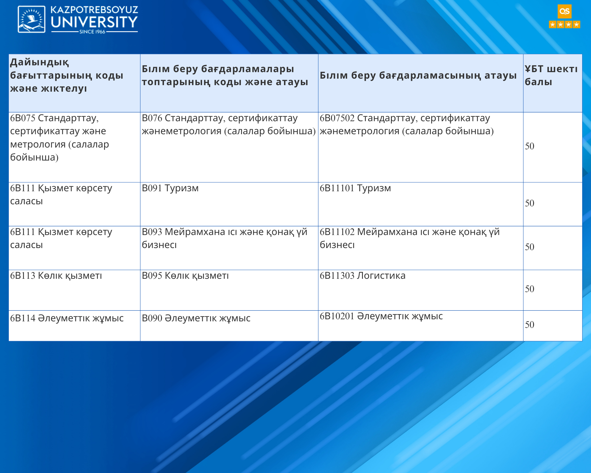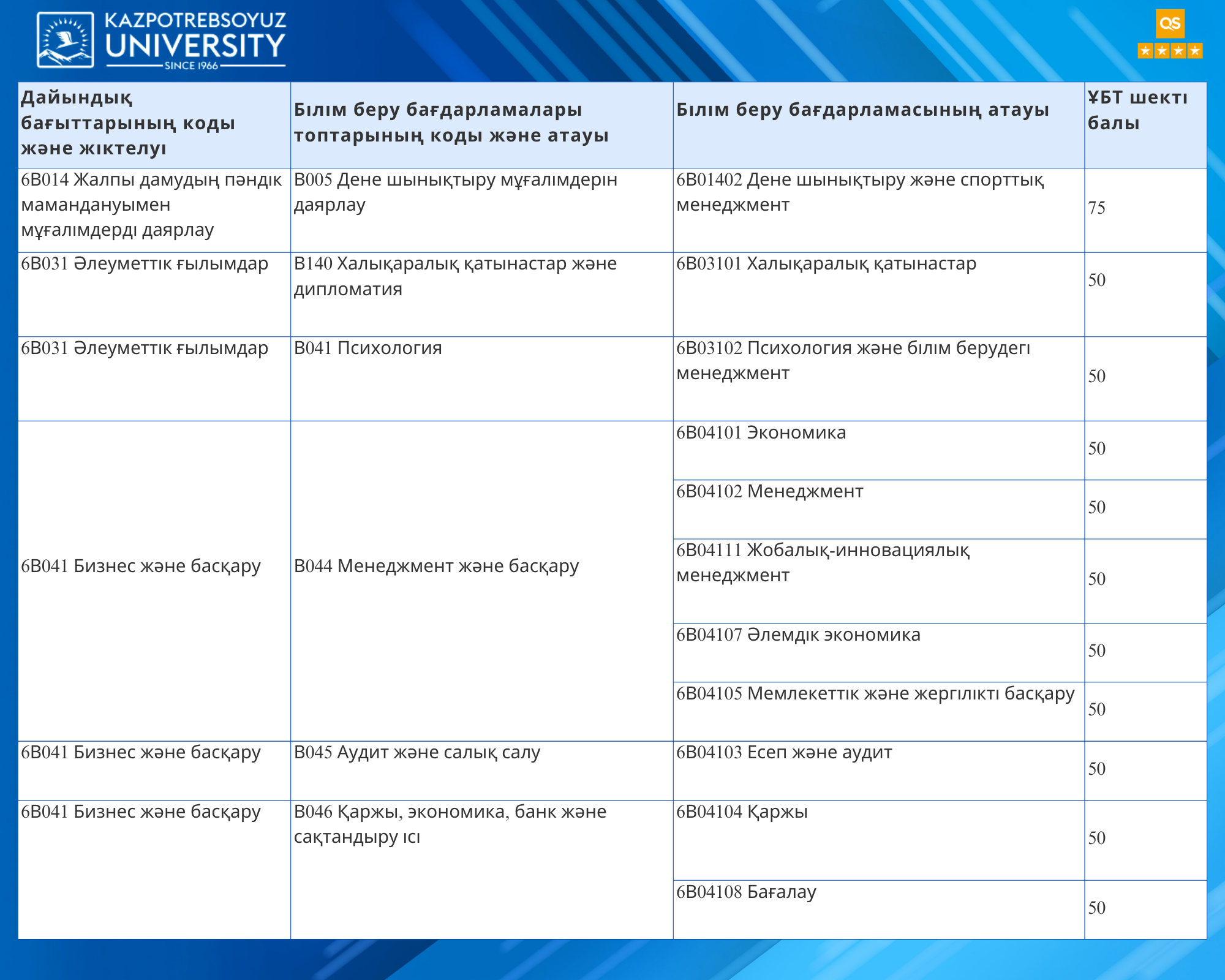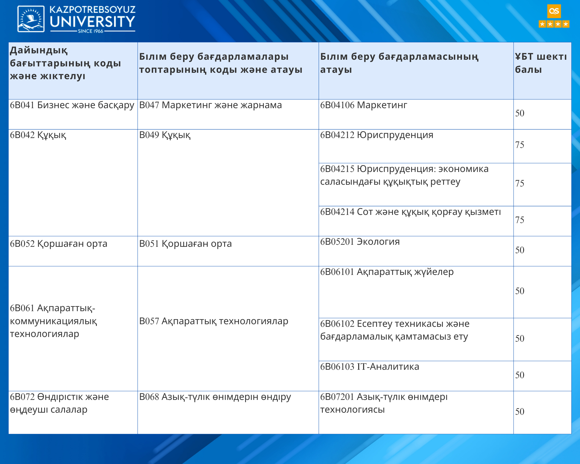 Қазтұтынуодағы Қарағанды университетінің өту балдары
