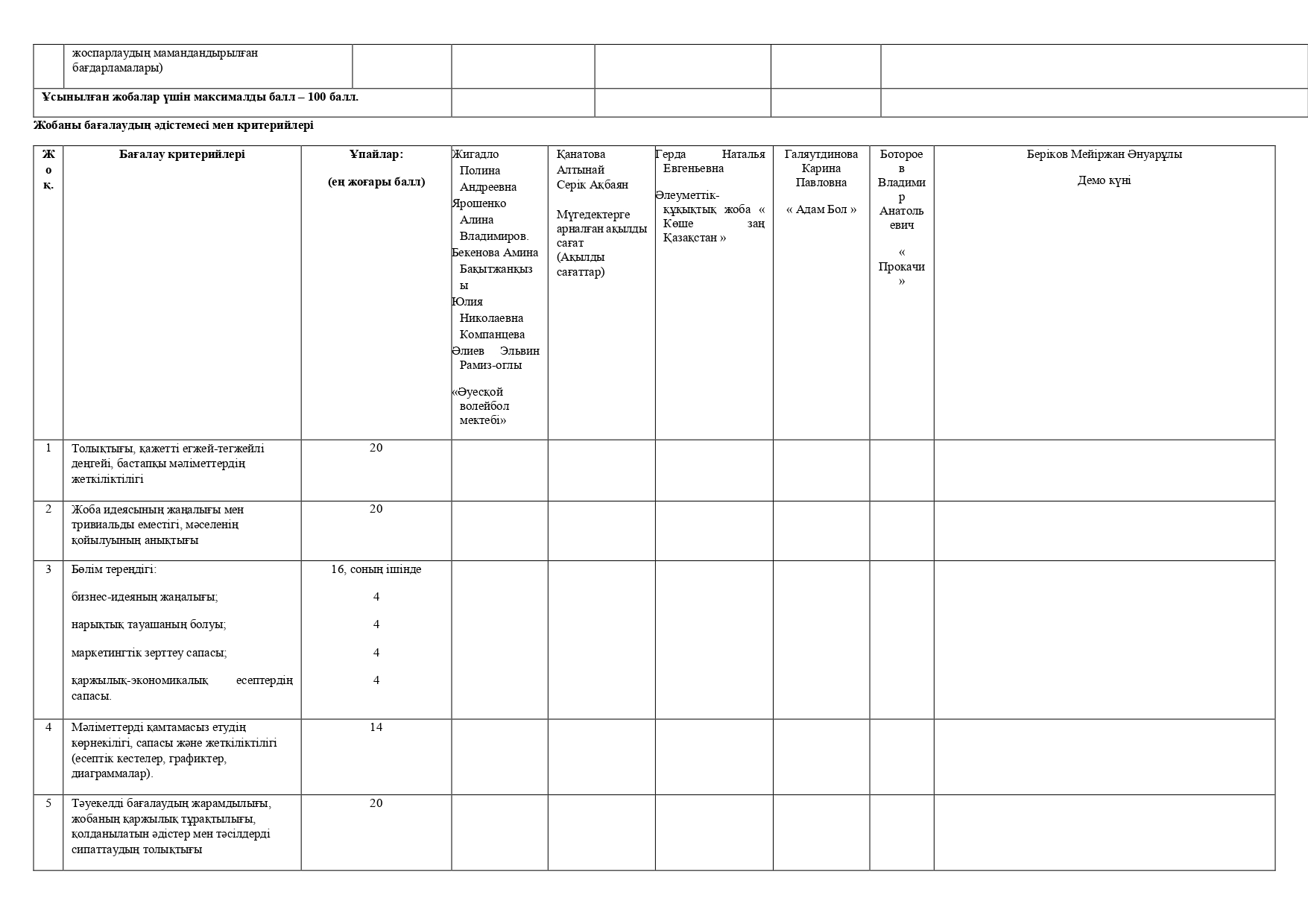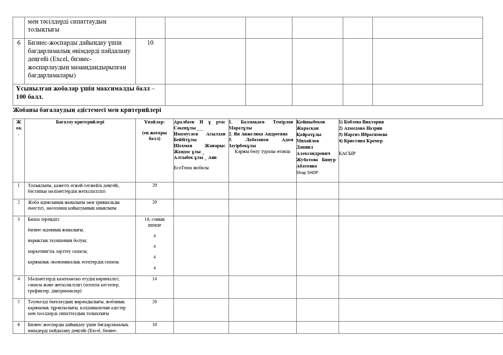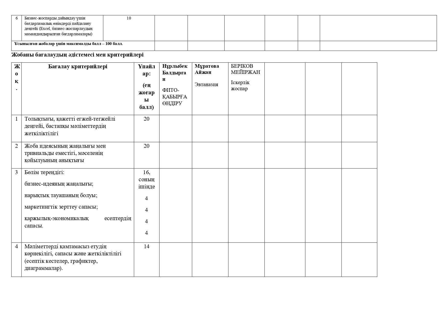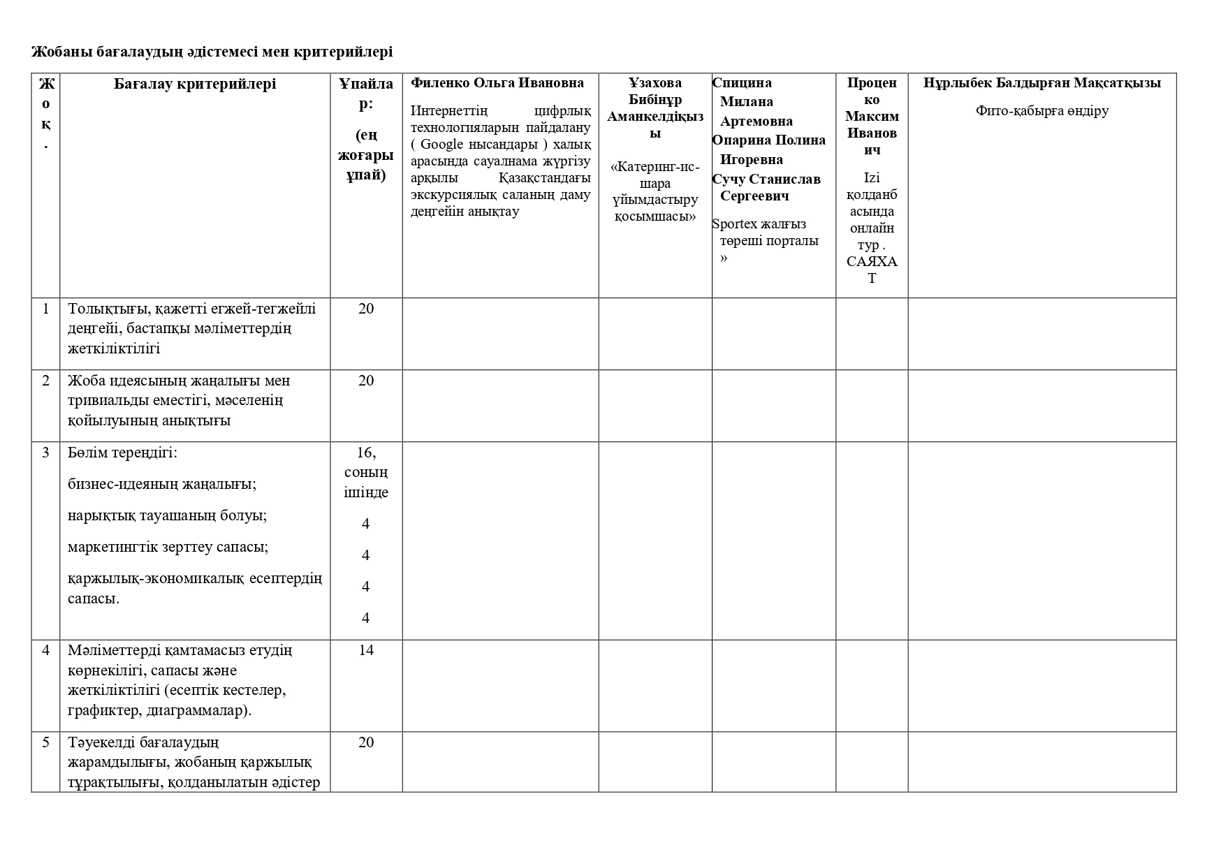 Жобаны бағалаудың әдістемесі мен критерийлері