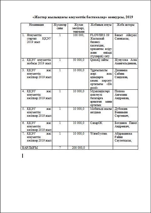 Жастар жылына арналған әлеуметтік бастамалар конкурсы 2019