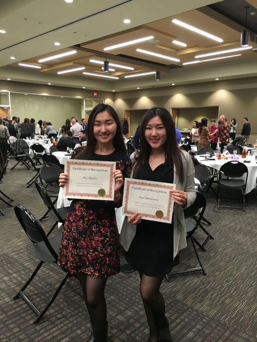 Студенты Абдакимова Асель и Блялова Алуа выражают огромную благодарность уважаемому ректору университета Аймагамбетову Еркаре Балкараевичу за предоставленную уникальную возможность пройти обучение в Питтсбургском государственном университете, приумножить свои знания, узнать культуру США, приобрести новых друзей и познакомить их с казахстанской культурой!