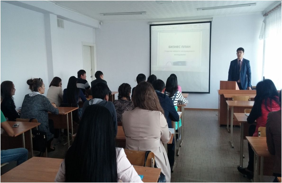 18.09.2015г. ст. преподавателем кафедры «Экономика и менеджмент» Безлер О.Д. было проведено занятие в группе Э-42 с приглашением представителя Палаты предпринимателей карагандинской области Байбосынова С.Б. по дисциплине «Предпринимательство» на тему «Бизнес-планирование в системе предпринимательской деятельности»