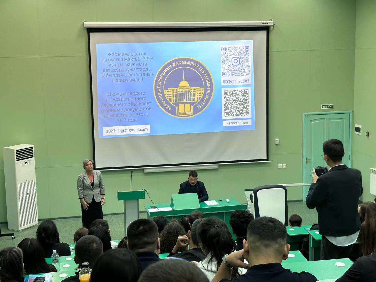Для разъяснения данного проекта 12 сентября 2023 года Карагандинский университет Казпотребсоюза посетили директор Академии государственного управления при Президенте Республики Казахстан по Карагандинской области Байбосынов Ерикжан Берикбаевич и председатель совета деловых женщин НПП Атамекен Шиллер Марина Васильевна. Наши студенты были полностью проинформированы о «Школе молодого государственного служащего».