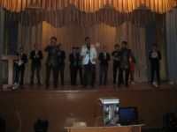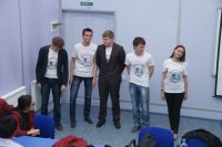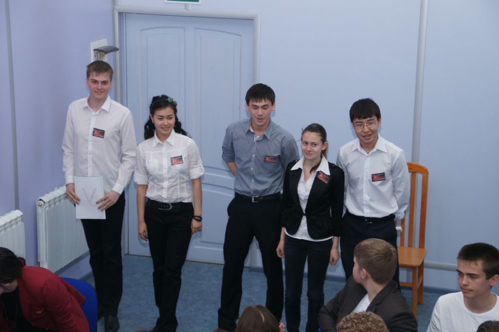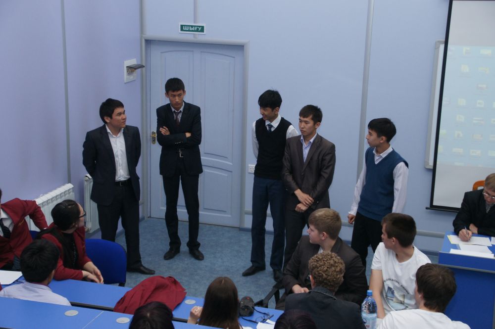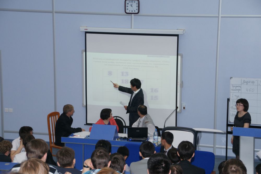 21 апреля 2012 года кафедра высшей математики провела интеллектуальную игру «Математический бой» среди учащихся гимназий и лицеев. В игре приняли участие команды из 4 учебных заведений. КГУ «Лицей №2» (ГУ Технический лицей) Липинский Сергей Пятенко Артем Астафьева Анна Афоничкин Иван Рябцев Игорь Школа-интернат для одаренных детей «Дарын» Жумагулов Сырымбет Байтоков Таймас Умиртаев Маргулан Серхан Ардақ Орманалиев Ануар Школа-интернат для одаренных детей «Мурагер» Айткужина Инкар Абзалов Жақсылық Сұлтанбек Адилет Сагадиев Танат Жумадильдин Алишер Гимназия №93 Жуманов Томирис Завьялов Евгений Нукештаев Арман Качанов Александр Жаманкулов Марат Общее количество участников и болельщиков составило 65 человек. По итогам игры призовые места распределились следующим образом: 1 место – ШОД «Дарын» 2 место – ГУ Технический лицей 3 место – ШОД «Мурагер» |