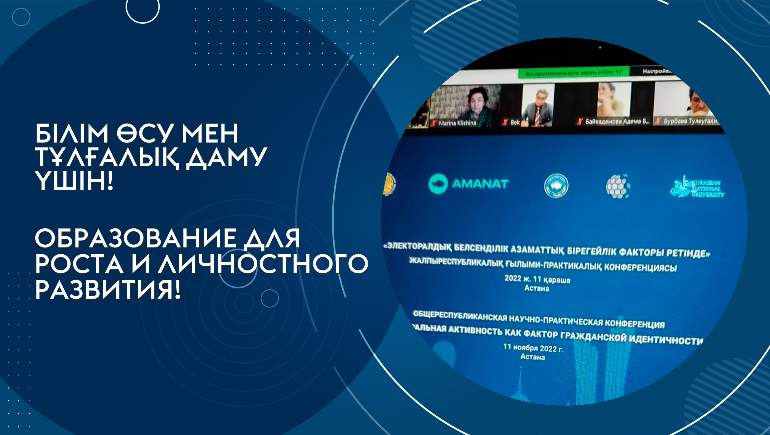11 ноября 2022 года коллектив кафедры СПД и АНК Карагандинского университета Казпотребсоюза принял участие в Общереспубликанской научно-практической конференции «Электоральная активность как фактор гражданской идентичности», проводимой Институтом прикладных этнополитических исследований МИОР РК совместно с Институтом общественной политики партии «AMANAT» и Евразийским Национальным Университетом им. Л.Н. Гумилева. В конференции приняли участие заместитель Председателя Ассамблеи народа Казахстана Азильханов М.А., вице-министр информации и общественного развития РК Кадиров Д.Р., депутат Мажилиса Парламента РК Кучинская Ю.В., Сыдыков Е.Б., ректор Евразийского национального университета им. Л.Н. Гумилева и другие.