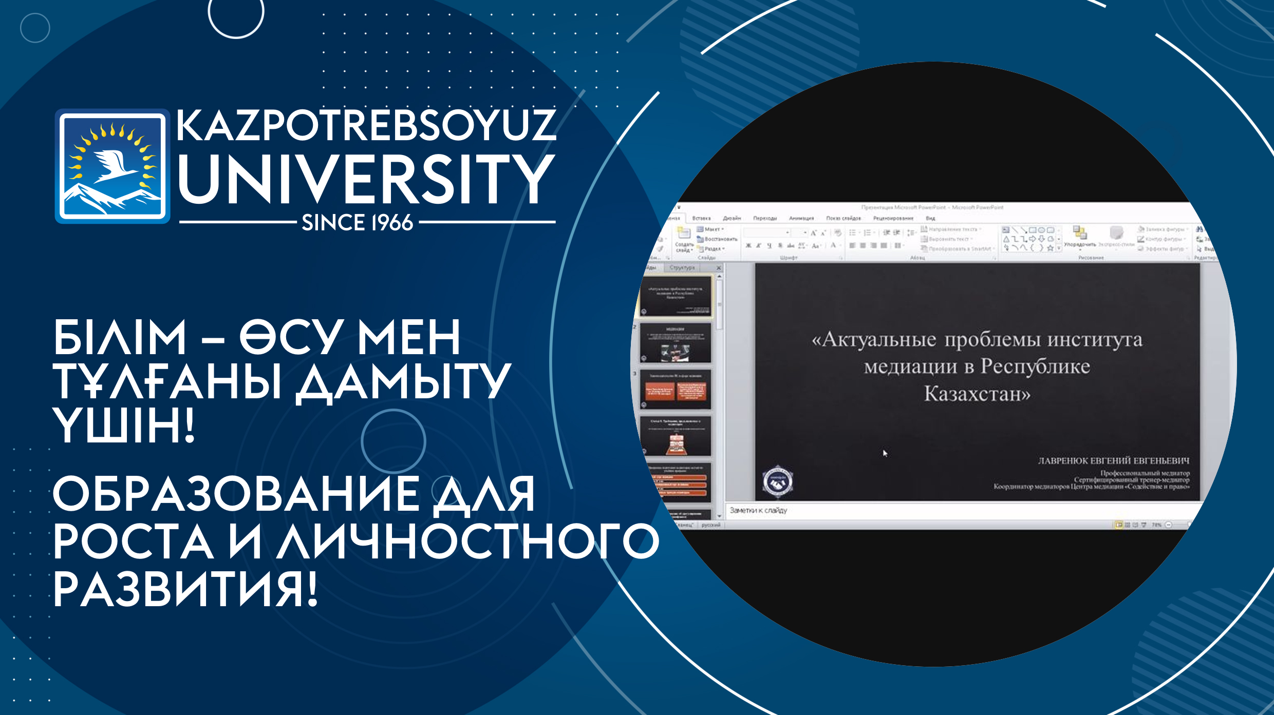 23 ноября 2021 года в 12.20 и в 13.10 часов состоялась платиновая лекция в онлайн режиме на платформе ZOOM на тему: «Актуальные проблемы института медиации в Республике Казахстан» профессионального медиатора,