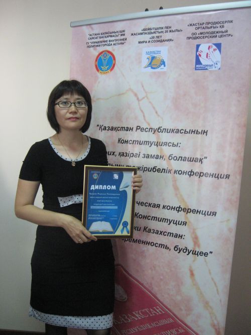 По итогам конкурса, магистру юриспруденции кафедры «Правовое регулирование экономических отношений» факультета Бизнеса и права КЭУК, Боранбаевой Айжан Есимкуловне за статью «К правовому государству - через высокий уровень правовой культуры и правового сознания», вручен диплом о присвоении первого места.