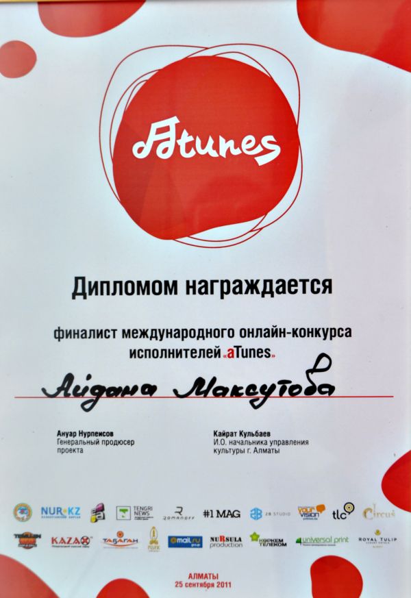 На протяжении двух месяцев проходил музыкальный конкурс Atunes. Отметим, что два месяца назад по инициативе творческой группы во главе с Ануаром Нурпеисовым и Абзалом Гарифуллиным появился новый музыкальный интернет-конкурс. За этот период организаторы получили более 300 заявок, из них были отобраны 15 человек, которые приехали в Алматы, где усиленно готовились к финалу. Финал прошел 25 сентября в одном из ночных клубов Алматы. Всего своим исполнением публику порадовали 14 исполнителей из Казахстана, Таджикистана, Италии и Великобритании. Каждый конкурсант исполнил по две песни на свое усмотрение.