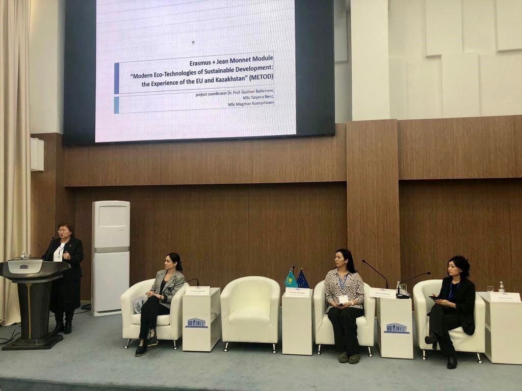 В качестве представителей нашего университета в мероприятии приняли участие проректор по международному сотрудничеству и стратегическому развитию Абдикаримова А.Т. и координатор Erasmus+ Jean Monnet Module 101127488 «Современные экотехнологии устойчивого развития: опыт ЕС и Казахстана» (METOD) Байкенова Г.Г.
