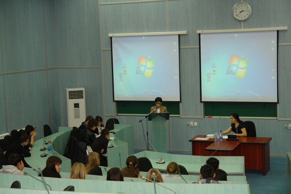 В рамках фестиваля «20 Вершин Независимости», посвященного 20-летию Независимости РК, 29.09.11 кафедрой общеюридических и специальных дисциплин проведен круглый стол на английском языке с участием учеников городских школ и студентов КЭУК на тему: «Предупреждение и борьба с терроризмом и религиозным экстремизмом: казахстанский и зарубежный опыт законодательного регулирования». В ходе работы круглого стола обсуждены вопросы, связанные с истоками терроризма, предупреждением терроризма, определением религиозного экстремизма, рассмотрены законодательные основы предупреждения и борьбы с терроризмом в Республике Казахстан. Ученики и студенты представили презентации, участники круглого стола дискутировали, их доклады бурно обсуждались. Следует отметить высокий уровень знания английского языка учеников школ и руководителя круглого стола Оразбаевой Т.Н. |