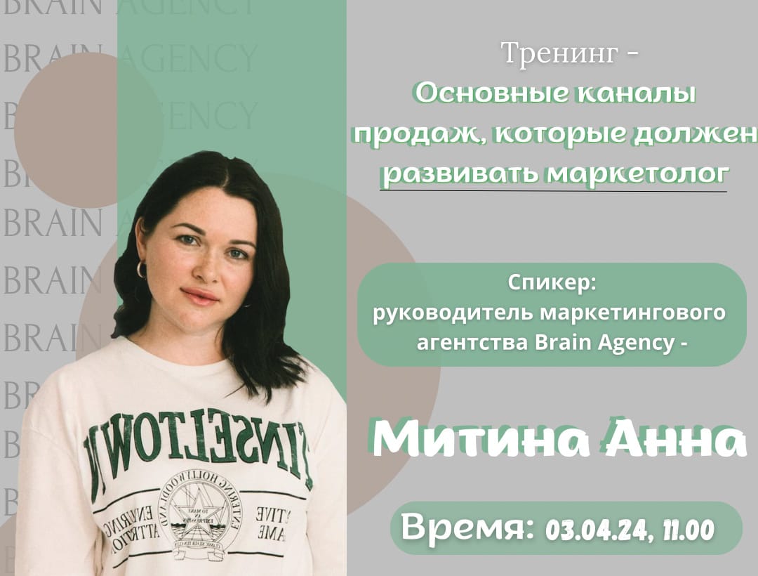 3 апреля 2024 года в нашем университете руководитель маркетингового агентства и академии BRAIN Анна Митина провела тренинг на тему: «Основные каналы продаж, которые должен развивать маркетолог». Анна Митина – дипломированный маркетолог, имеющий 15 лет практического опыта в маркетинге, 8 лет опыта в SMM, блоггер, автор тренингов по продажам и маркетингу.