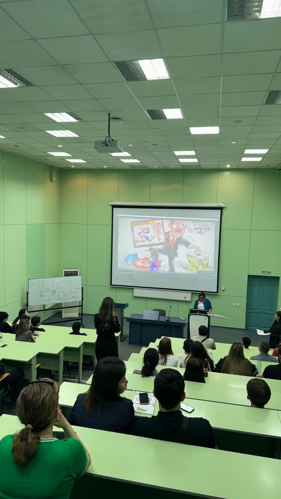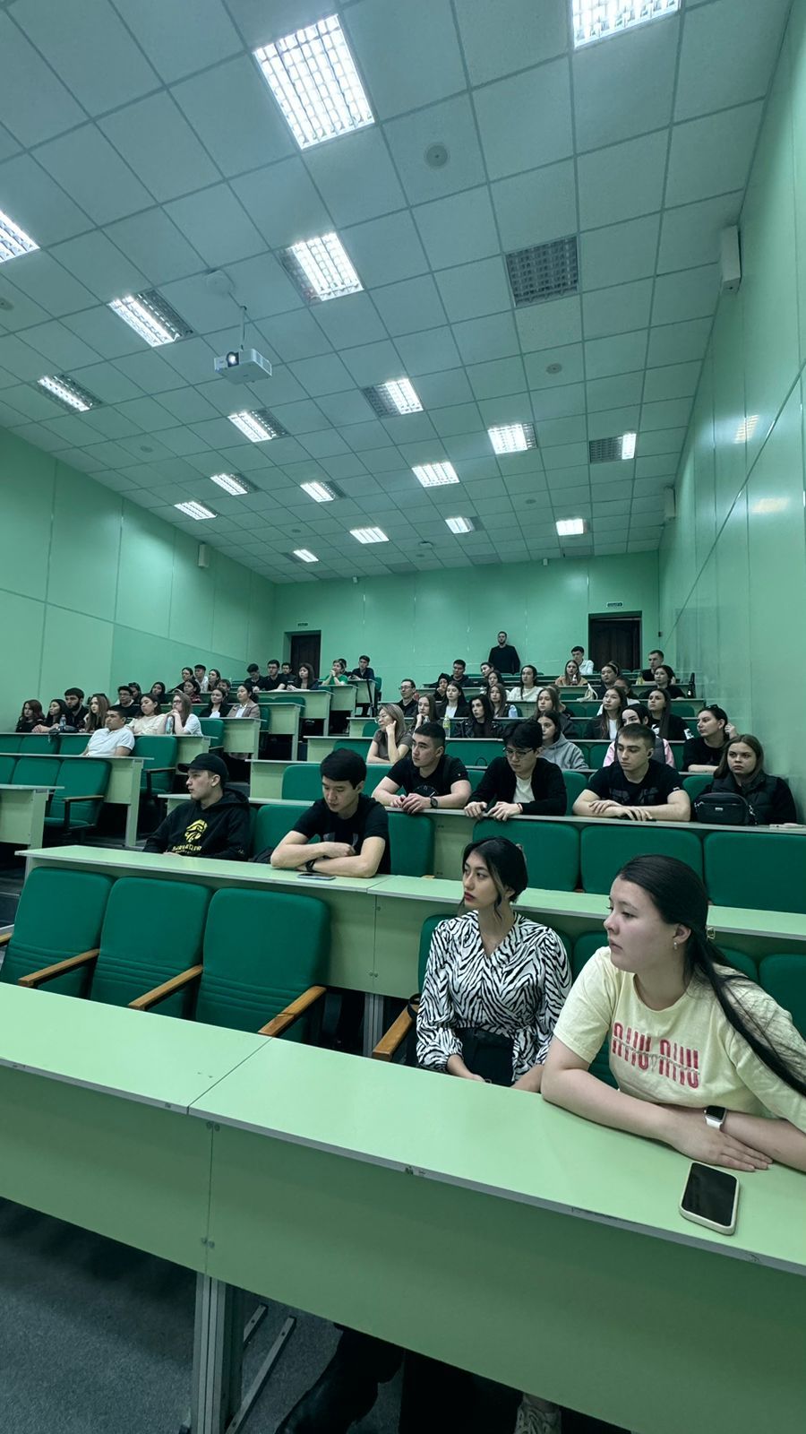 Заместитель руководителя Шаришев Самат Муратович и руководитель Административного управления Саттыбаева Меруерт Рахимбековна подробно рассказали студентам о текущей ситуации в стране, о хищении бюджетных средств и о других экономических преступлениях.