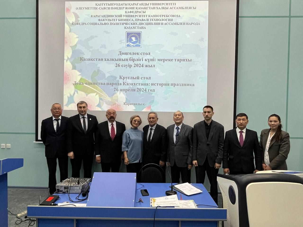 Так в стенах нашего университета был проведен круглый стол на тему «День единства народа Казахстана: история праздника». В работе круглого стола приняли участие Руководитель отдела научно-экспертного сопровождения и методического обеспечения «Қоғамдық келісім» управления внутренней политики Карагандинской области Малаев Думан Базаркеевич, почетный гражданин Карагандинской области Громов Валерий Леонидович, член правление ОО «Этнокультурное объединение корейцев Карагандинской области» Хегай Ася Александровна, руководитель общественного объединения «Карагандинского областного польского общества «Polonia» Хмелевский Виталий Альбертович, преподаватели кафедры «Социально-политических дисциплин и Ассамблеи Народа Казахстана» и студенты Карагандинского университета Казпотребсоюза.