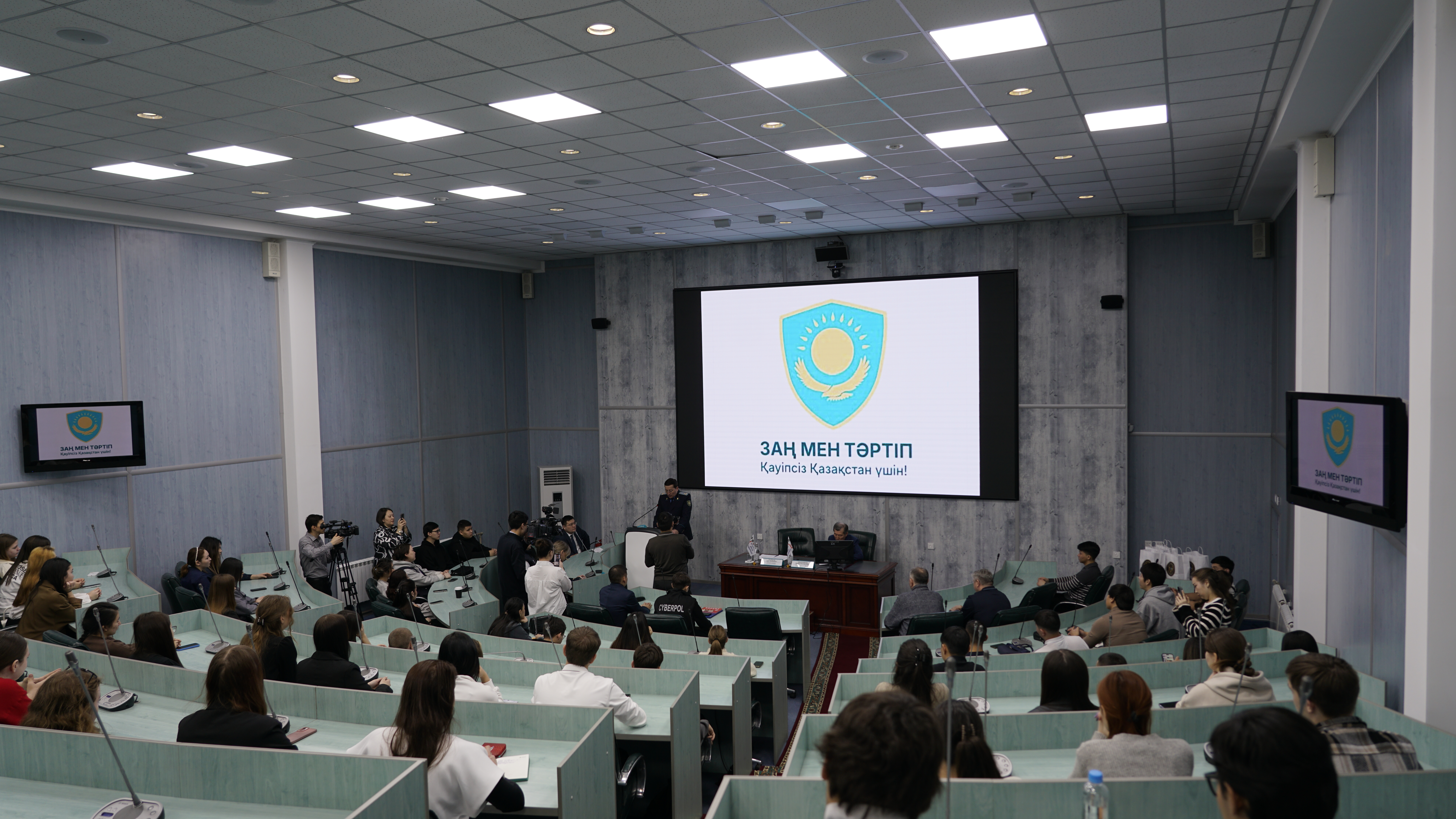 В ходе встречи со студентами и профессорско-преподавательским составом ректор университета, доктор экономических наук, профессор Аймагамбетов Е.Б. обратил внимание на положения Послания Президента Республики Казахстан К.К. Токаева, в котором одним из ключевых приоритетов определено всестороннее утверждение в обществе идеологии «Закон и порядок», а также развитие финансовой грамотности и цифровой гигиены. Ректор подчеркнул, что данные вопросы приобретают особую актуальность в контексте конституционного развития страны, и рассказал о системной работе, проводимой в университете по исполнению поручений Главы государства в данном направлении.