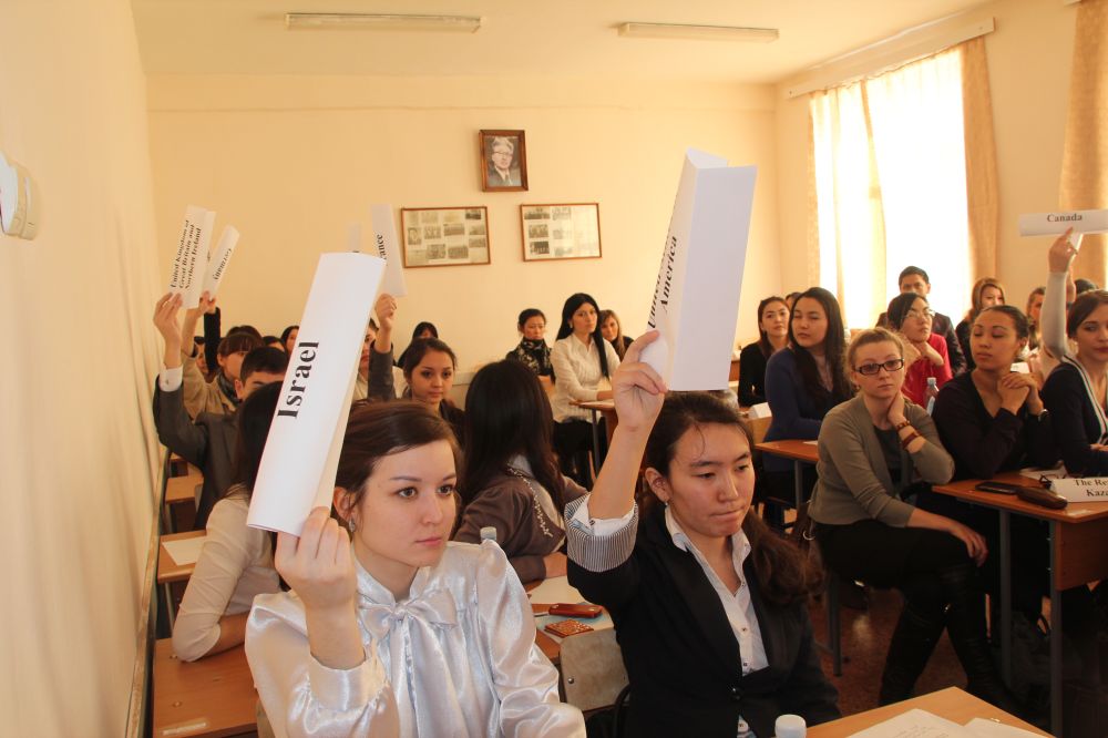 Темой для обсуждения было « Ядерное оружие Исламской Республики Иран» На заседании студенты примерили на себя роль дипломатов стран участниц Генеральной Ассамблеи ООН. Участники обсуждали современные мировые проблемы, а также продемонстрировали свои ораторские способности. По окончанию заседания была принята Резолюция. Студентки КЭУК группы МО-11 Курамшина Екатерина и Абдрахманова Лилия заняли 3-е место. Всем были вручены сертификаты участия, после вручения состоялся фуршет. |