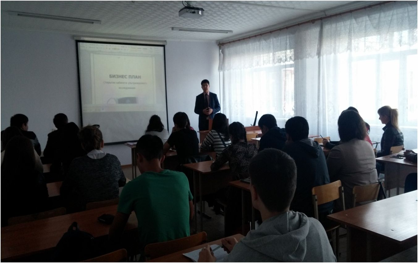 18.09.2015г. ст. преподавателем кафедры «Экономика и менеджмент» Безлер О.Д. было проведено занятие в группе Э-42 с приглашением представителя Палаты предпринимателей карагандинской области Байбосынова С.Б. по дисциплине «Предпринимательство» на тему «Бизнес-планирование в системе предпринимательской деятельности»