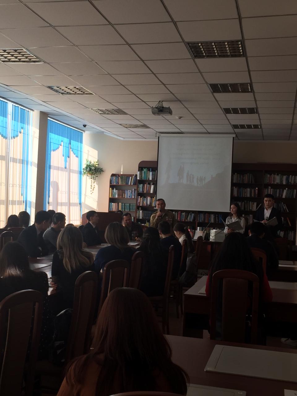 06 февраля 2019 года преподаватели кафедры «Финансы» учетно-финансового факультета магистр преподаватель Хусайын Фархат, магистр ст. преподаватель Майкенова Алия Егинбаевна и магистр ст. преподаватель Игликова Динара Дакеновна провели открытый кураторский час, посвященный празднованию 30-летия вывода советских войск из Афганистана. На мероприятие были приглашены участники Афганской войны Жакупов Ғалым Тлеубаевич и Мусатаев Төлеуғазы Абылкасович.