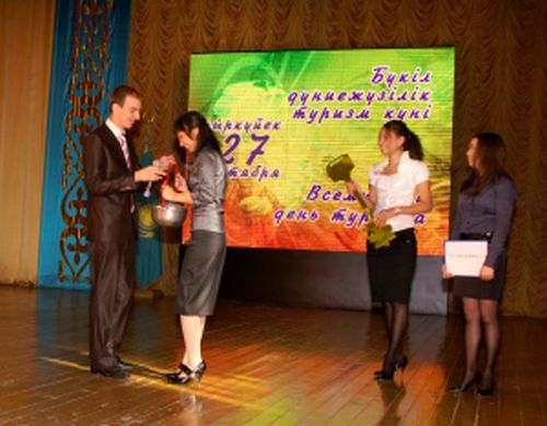 Апофеозом празднества стала церемония вручения первым проректором университета профессором Розой Олжабаевной Бугубаевой студентам специальности Амантаевой А., Крыловой Д., Тупейко М., Штиновой А., Есеновой Г., Батталовой Д., Сембековой И. благодарственных писем за отличную учебу и активное участие в общественной жизни университета. Эта церемония стала особенно приятной в присутствии почетных гостей праздника – Халилина Е.Б. – начальника Управления туризма, физкультуры и спорта; Сатжановой А.А. – директора туристской фирмы «Гелиос»; Копина М.А. – директора туристской фирмы «Туризм КZ», а также учащихся 10 классов гимназии №1 и №9 г. Караганды.