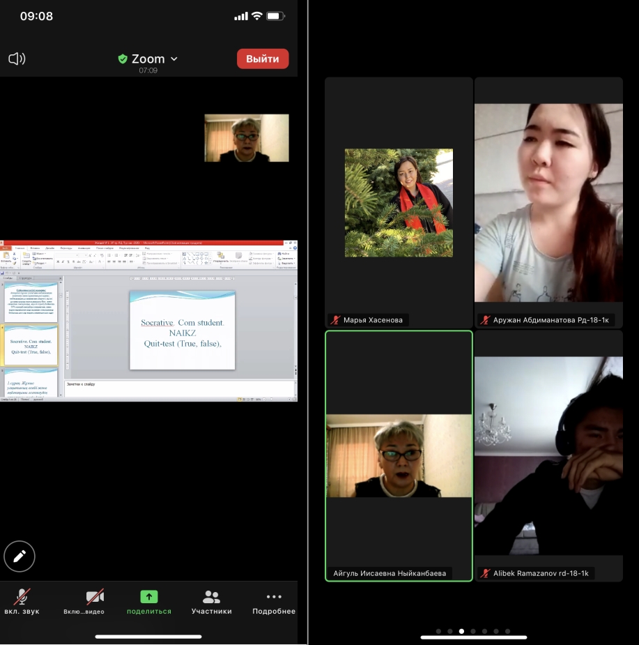 На занятии приняли участие преподаватели кафедры «Бухгалтерский учет и аудит» и член комиссии Совета академического качества Карагандинского экономического университета Казпотребсоюза Каримова Бахытгуль Нурлановна. Основная цель занятия: Расчет и документальное оформление заработной платы за фактически отработанное время работниками, четкое разграничение обязательных, добровольных удержаний из заработной платы и налоговые вычеты, в каких случаях применяется 90% по корректировке дохода. На занятии преподаватель продемонстрировала, как применяет интерактивный тест Qiuz.