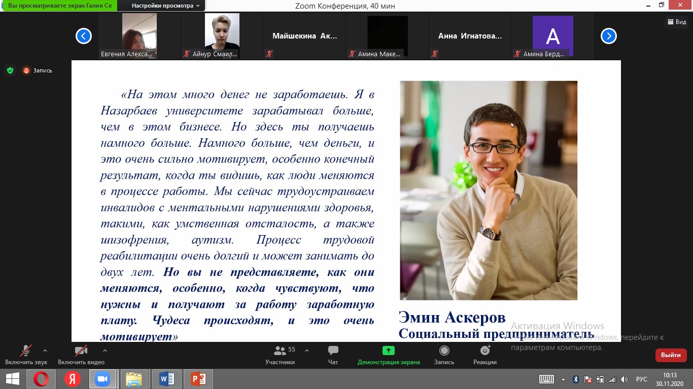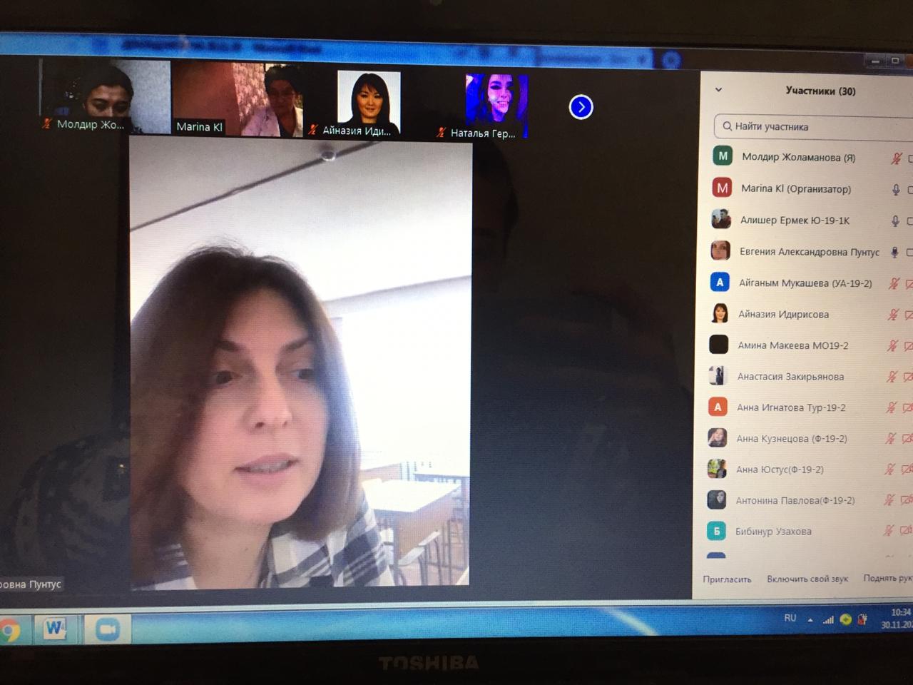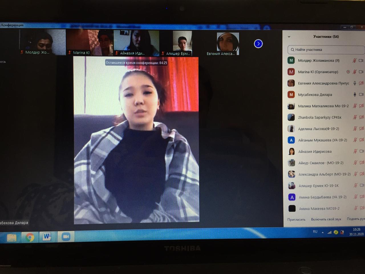 30 ноября 2020 в КЭУК состоялся брифинг «Студенческая молодежь – важнейший ресурс Независимого Казахстана». Подведение итогов Года волонтера в рамках реализации Программы «Рухани жаңғыру» и проблемы предупреждения влияния идей радикализма и протестного движения», посвященный Дню Первого Президента, Году волонтера и предстоящим парламентским выборам.