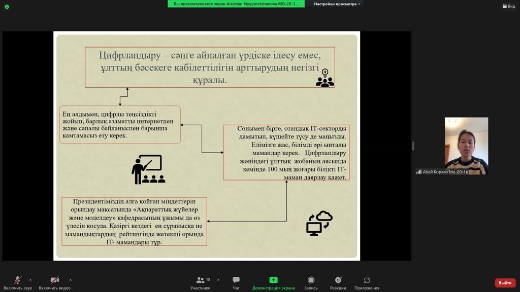 2 «Білім беруді цифрландыру» - Нығметжанова Аружан и Абай Қорлан студенты группы МО-20-1к;