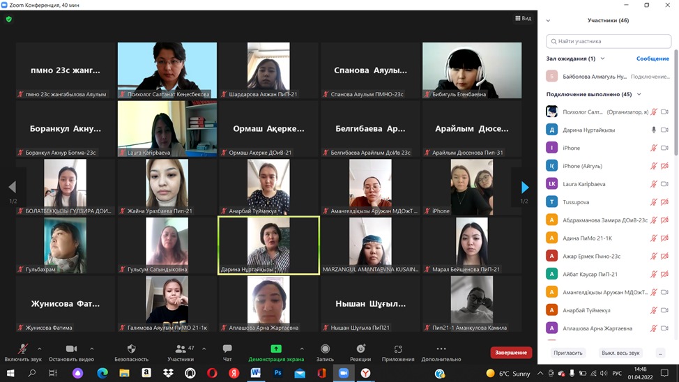 Модератором семинара выступила старший преподователь кафедры «Психология, педагогика и социальная работа»– Кусайнова Маржангул Амантаевна.