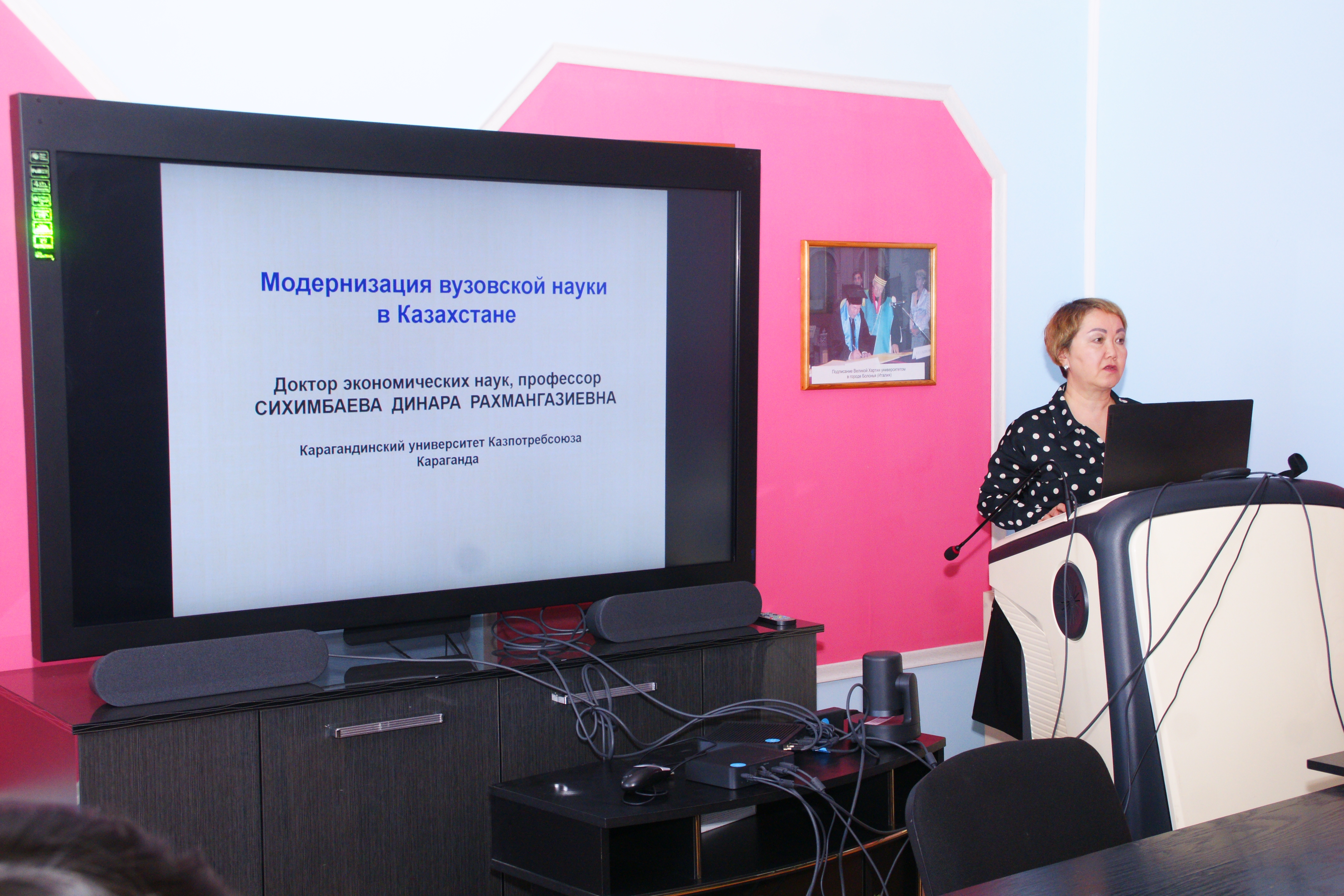Главный научный сотрудник лаборатории НИИ ЭПИ Карагандинского университета Казпотребсоюза, д.э.н., профессор Сихимбаева Д.Р. провела научный семинар для ППС, магистрантов и докторантов с участием российских ученых на тему «МОДЕРНИЗАЦИЯ ВУЗОВСКОЙ НАУКИ В КАЗАХСТАНЕ». Научный семинар состоялся 8 апреля 2022г. в 15-10ч, ауд. 287.