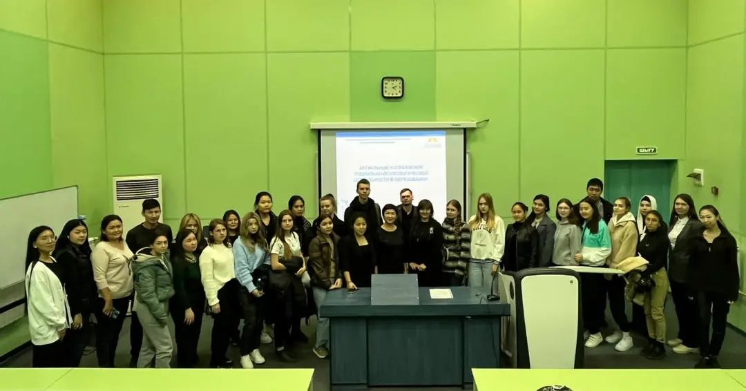 28 сентября состоялось заседание кафедры с приглашением Любчанской Т.В. - заведующей лаборатории социально-психологического сопровождения Республиканского научно-практического центра дополнительного образования «Сарыарка Дарыны». В ходе встречи были обсуждены основные направления сотрудничества, в том числе, при поддержке Центра учебного телевидения - создание документальных фильмов и социальных роликов по актуальным проблемам социально-психологического сопровождения детей и семей. Итогом встречи стало подписание Соглашения об УНПК “Даму” и договора о прохождении профессиональной практики студентами ОП “Социальная работа” и “Психология и менеджмент в образовании”.