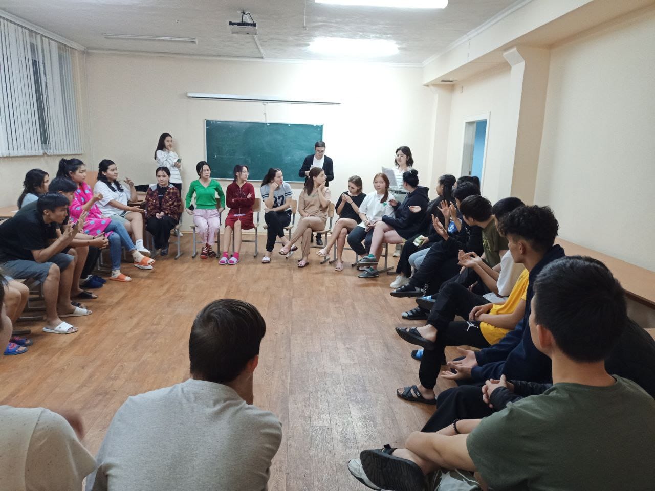 В этой связи преподаватель кафедры ППиСР Исаев А.А. и студентка 2 курса ОП «Психология и менеджмент в образовании» Адамбекова Айнара провели транинг для студентов 1 общежития: «Снятие эмоционального напряжения в период подготовки к рубежному контролю»