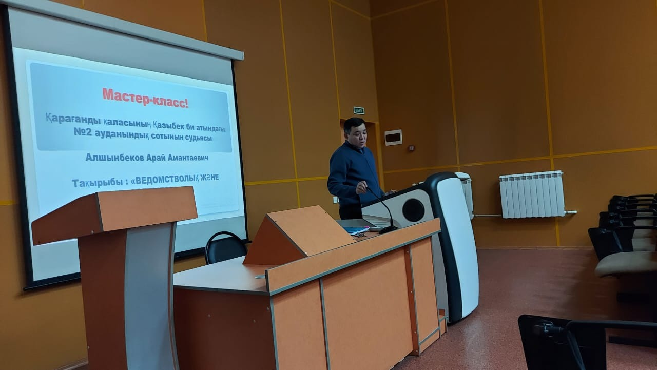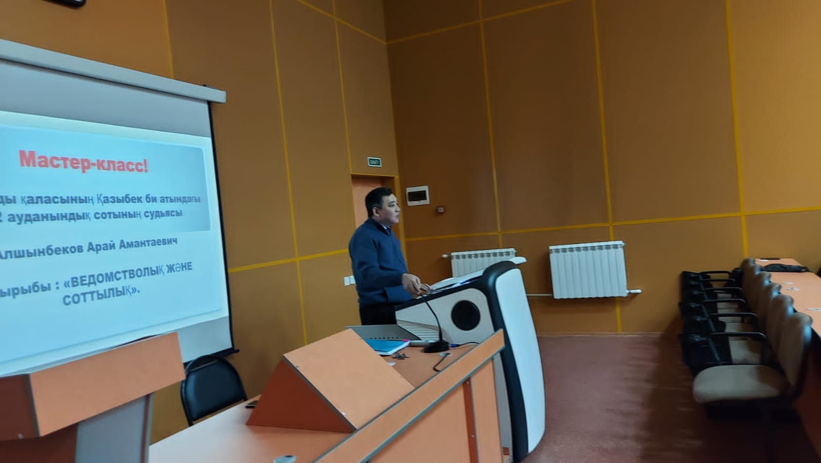 17 ноября 2022 года Кафедра правового регулирования экономических отношений организовала мастер-класс судьи районного суда №2 имени Казыбек би г.Караганды Алшынбекова Арай Амантаевича на тему: «Ведомственность и подсудность». На мастер-классе были сказаны, что гражданские дела по заявлению исковых требований по спорам, возникающим из гражданских, семейных, трудовых, жилищных, финансово-хозяйственных, земельных отношений и иных правоотношений относятся к ведомству судов. Были затронуты актуальные вопросы подсудности по выбору истца, исключительной подсудности, договорной подсудности, и подсудности нескольких связанных между собой дел.