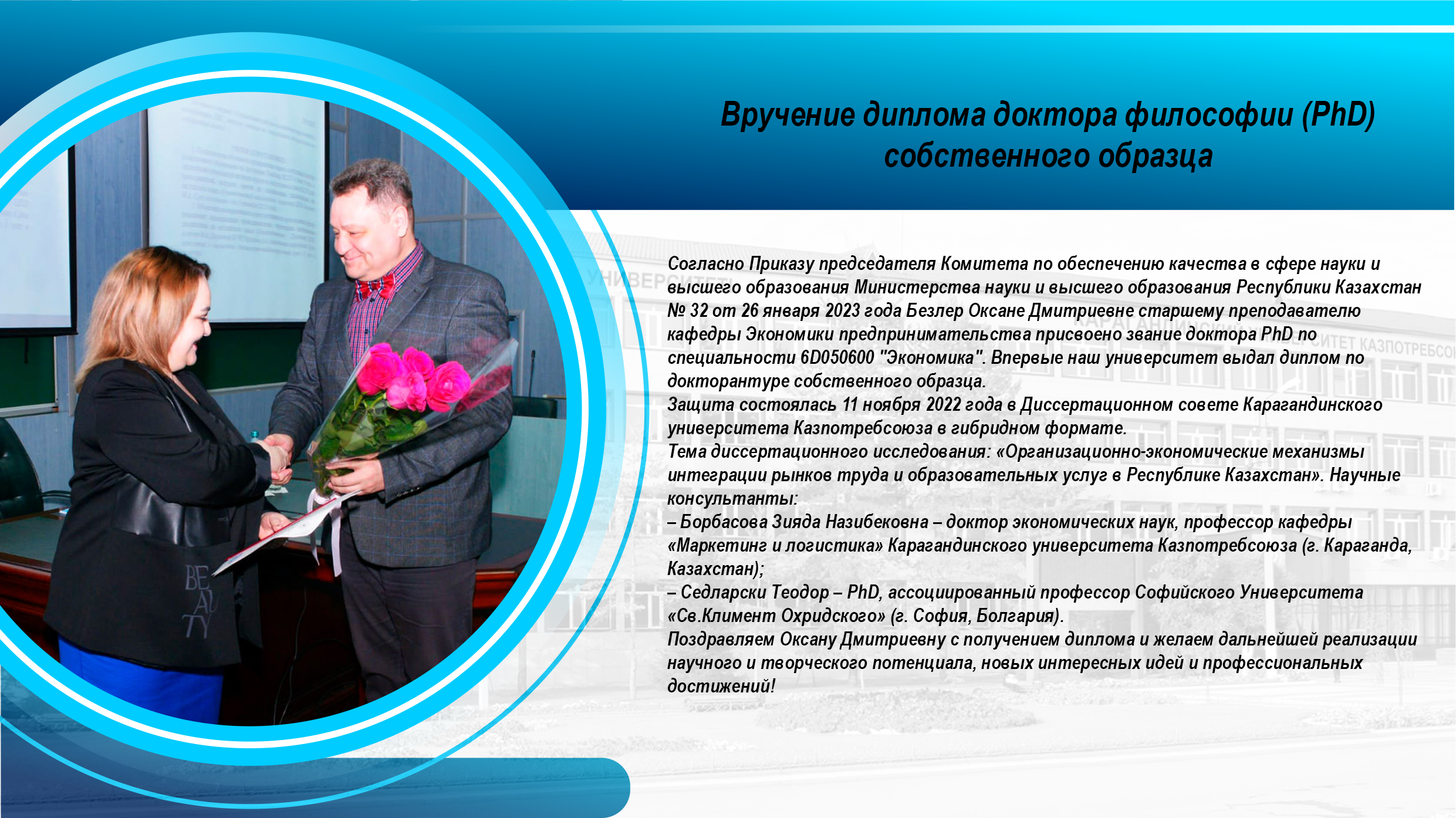 Утвержденные формы дипломов собственного образца КарУ Казпотребсоюза