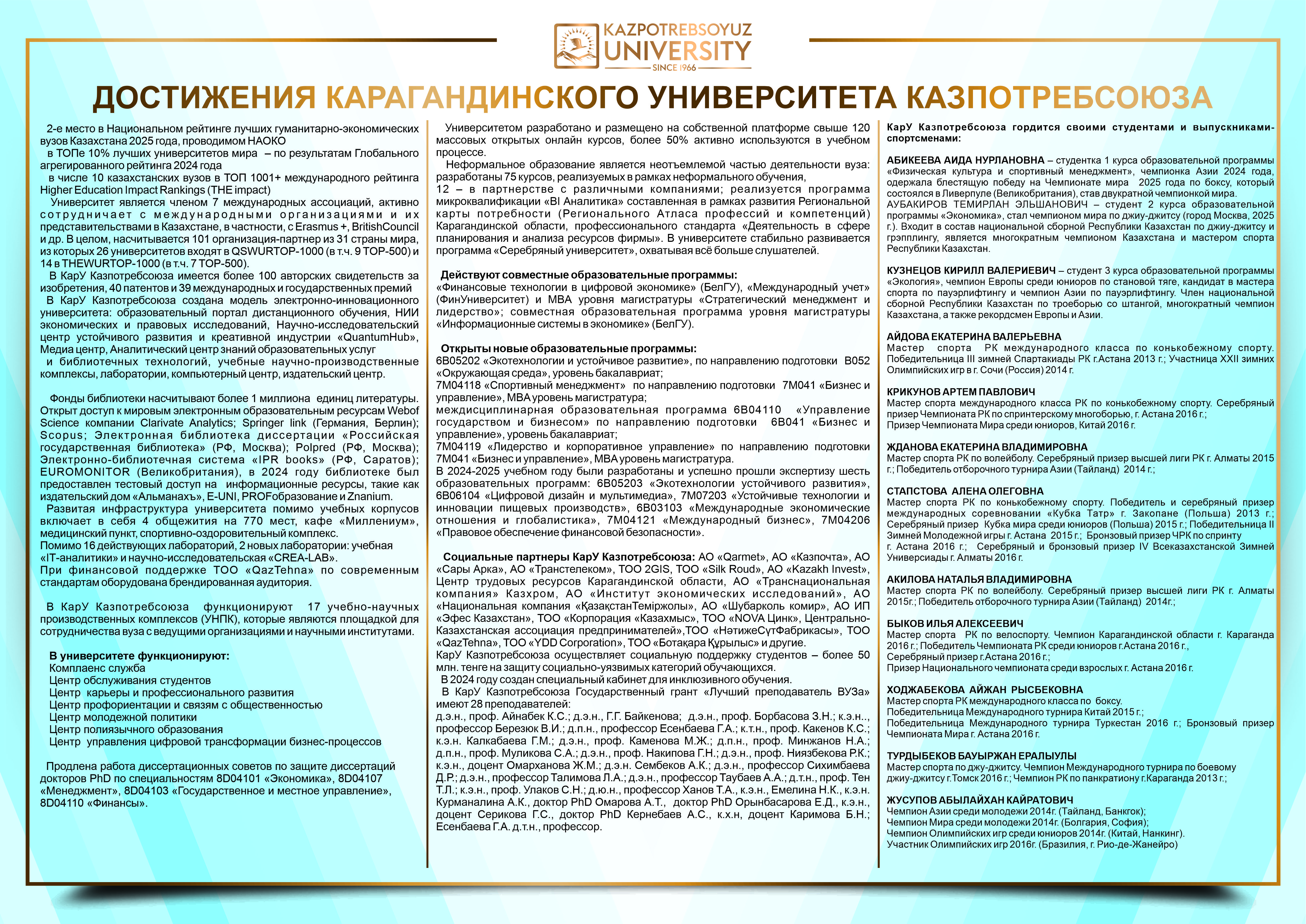 Миссия Карагандинского университета Казпотребсоюза – реализация образовательной и научной деятельности как основы профессионального и личностного роста конкурентоспособных специалистов для устойчивого развития региона.